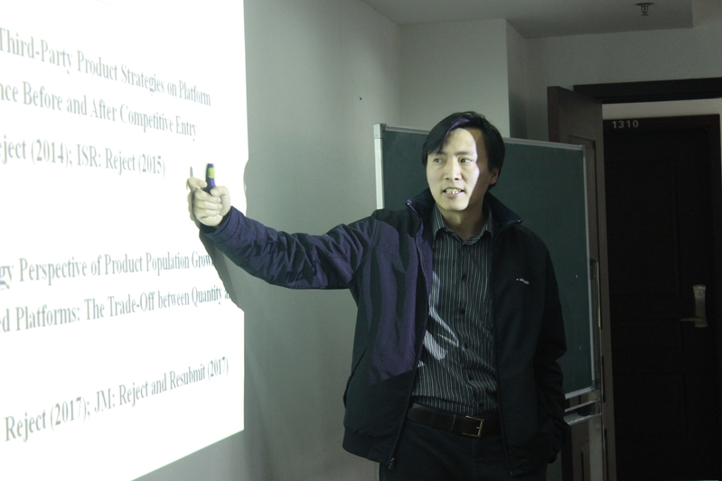 随后分享的是滚球买球的app官网营销与电子商务系副教授宋培建老师,其研究方向是平台战略、数据驱动的电子商务运营管理,目前担任ECRA副编辑, MIS Quarterly等期刊审稿人。宋老师在国际顶尖期刊 MIS Quarterly以及主流期刊 Decision Support Systems Engineering Management on and Management, Journal of International Marketing上发表论文20余篇,论文曾入选美国管理学会最佳论文集并获得信息资源管理国际会议最佳论文,复旦大学优秀博士论文,上海市优秀博士论文。此次,他分享的论文The Ecosystem of Software Platform: A Study of Asymmetric cross-side Network Effects and Platform Governance已在MIS Quarterly发表,论文主要讲述了软件生态系统中双边不对称现象的存在以及对平台管理者的建议。宋老师以该篇论文为引题,分享了他关于数据驱动的研究过程以及如何做更具有实践价值和理论意义的学术研究。