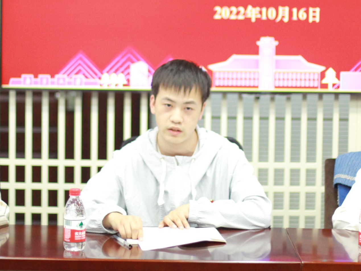 院研究生党员代表许润达、刘铭丞、田玲、熊媛媛,院团委工作人员代表王阳坤、陈露薇,院研究生会工作人员代表徐萍、唐星宇,院研究生代表唐心、薛天怡、余嘉莉、王星媛、杏稼龙、赵明明,院本科新生代表纪子洋、邢雨欣等人围绕学习大会精神,结合自己的学习和工作职责,先后分享学习心得体会。大家一致表示,要坚定不移听党话、跟党走,怀抱梦想又脚踏实地,敢想敢为又善作善成,立志做有理想、敢担当、能吃苦、肯奋斗的新时代好青年,让青春在全面建设社会主义现代化国家的火热实践中绽放绚丽之花。