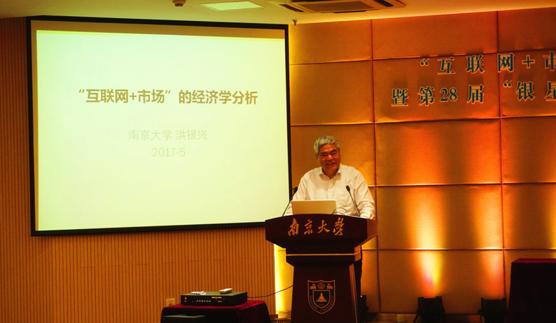 之后,洪银兴老师为在场师生带来了题为《“互联网+市场”的经济学分析》的精彩讲座。他用深入浅出的经济学语言,生动有趣的事例,悉心讲解了“互联网+市场”呈现出的技术和经济特征,“互联网+平台”所能克服的市场缺陷和汇聚的公共信息资源,“互联网+”对就业带来的挑战与对商业模式带来的创新,以及“互联网+”带来的市场秩序和市场效应新变化和新影响。精彩的讲解,拓宽了同学们的视野,加深了同学们对“互联网+市场”新形势的理解,赋予了同学们新的思维方式去思考当前的经济现象,也让同学们充分感受到了经济学大家和经济学学科的魅力,赢得了同学们的热烈掌声。