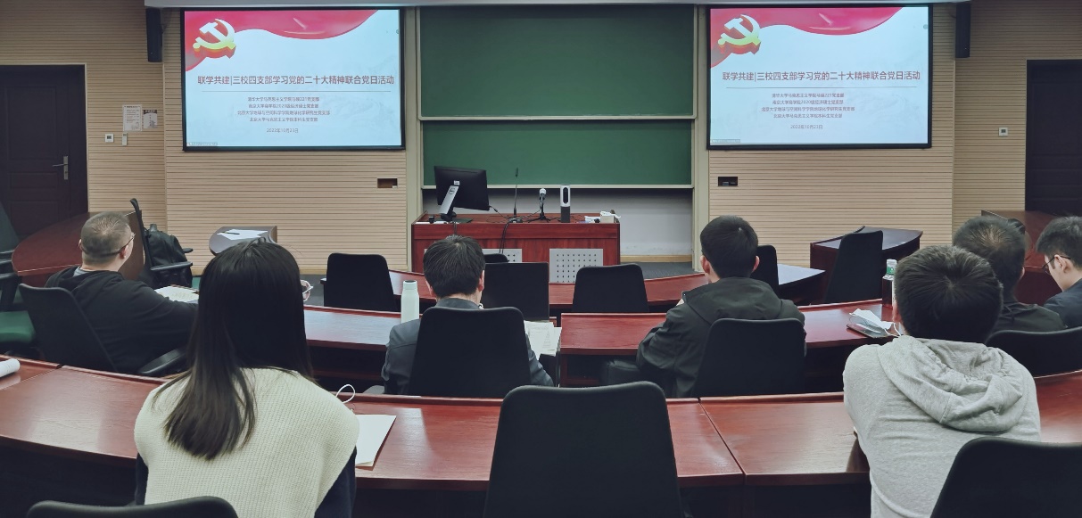 新征程上旗帜高扬,新征程上使命光荣。通过开展本次联合主题党日活动,三校学生党支部创新了疫情防控常态化背景下的不同高校学生交流形式,不断增进大家的政治认同、思想认同、理论认同、情感认同。新征程是充满光荣和梦想的远征。蓝图已经绘就,号角已经吹响。大家一致表示,将更加紧密地团结在以习近平同志为核心的党中央周围,全面贯彻习近平新时代中国特色社会主义思想,深刻领悟“两个确立”的决定性意义,增强“四个意识”、坚定“四个自信”、做到“两个维护”,切实把思想和行动统一到习近平总书记重要讲话精神上来,统一到党的二十大作出的重大决策部署上来,发挥先锋模范作用,全身心、全方位做好党的二十大精神学习宣传贯彻工作,推动党的二十大精神落地见效,坚定信心、同心同德,埋头苦干、奋勇前进,为全面建设社会主义现代化国家、全面推进中华民族伟大复兴而团结奋斗,继续赢得更加伟大的胜利和荣光。