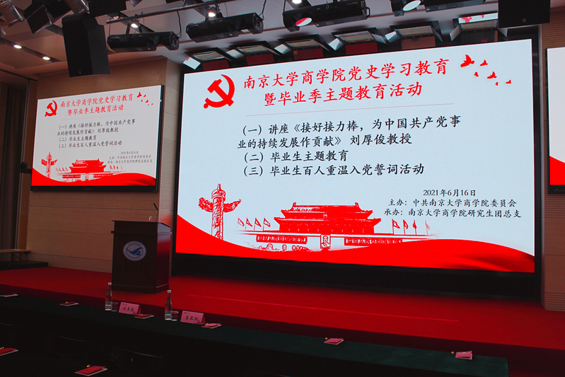 为学习贯彻习近平总书记关于党史学习教育重要讲话,以建党百年为契机,学党史、悟思想、办实事、开新局,围绕立德树人根本任务,将党史学习教育落实在人才培养的实际工作中,着力培养新时代德才兼备的高层次人才,滚球买球的app官网党委于6月16日在安中楼报告厅举办“迎百年传承家国情怀,新征程接续奋斗精神” 党史学习教育暨毕业季主题教育活动日。活动由滚球买球的app官网研究生团总支承办。滚球买球的app官网党委副书记吕亚红、退休教授刘厚俊、教师党支部书记程德俊、王宇伟、李远本、党委秘书胡春妮和学工办的老师们参加了此次活动。活动日以党史教育为核心,以毕业季教育为主要内容,创新活动形式,通过名师讲座、主题教育、重温入党誓词、知识竞赛等多样化内容展开。
