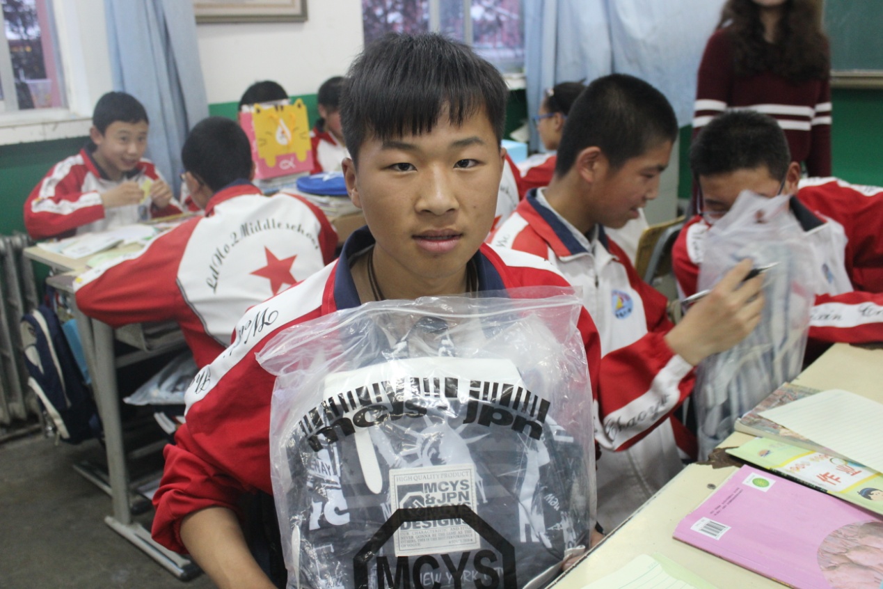 陪读活动结束后,团总支收集了隆德二中初二(3)班(南大班)42个同学渴望已久却一直难以实现的微心愿:有的同学渴望换掉已经破旧的书包,有的同学想要一副垂涎已久的乒乓球拍,有的同学想为父母送一个自己无力购买的暖手宝……这些淳朴而美好的心愿通过志愿者微信群发布,数日内也被一一认领。值得一提的是,每个物品也都写有捐赠者的祝福寄语。志愿者们简单的一点付出,让孩子们感受到了来自几千公里之外的关心与祝福,收获了梦想成真的喜悦。