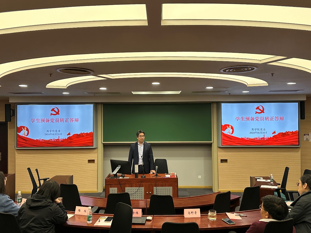 11月21日下午,滚球买球的app官网2024年秋季学期学生预备党员转正答辩大会在鼓楼校区安中楼B03教室举行。滚球买球的app官网党委副书记王宇伟,院党委委员、经济学院副院长马野青,党委兼职组织员、经济学系副主任路瑶,本科生第一党支部书记、博士生辅导员罗洁,院党委秘书、专职组织员胡春妮组成答辩小组。来自本科、硕士、博士等学生党支部共计13位预备党员参加本次转正答辩。