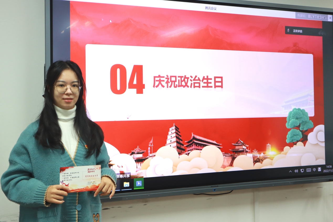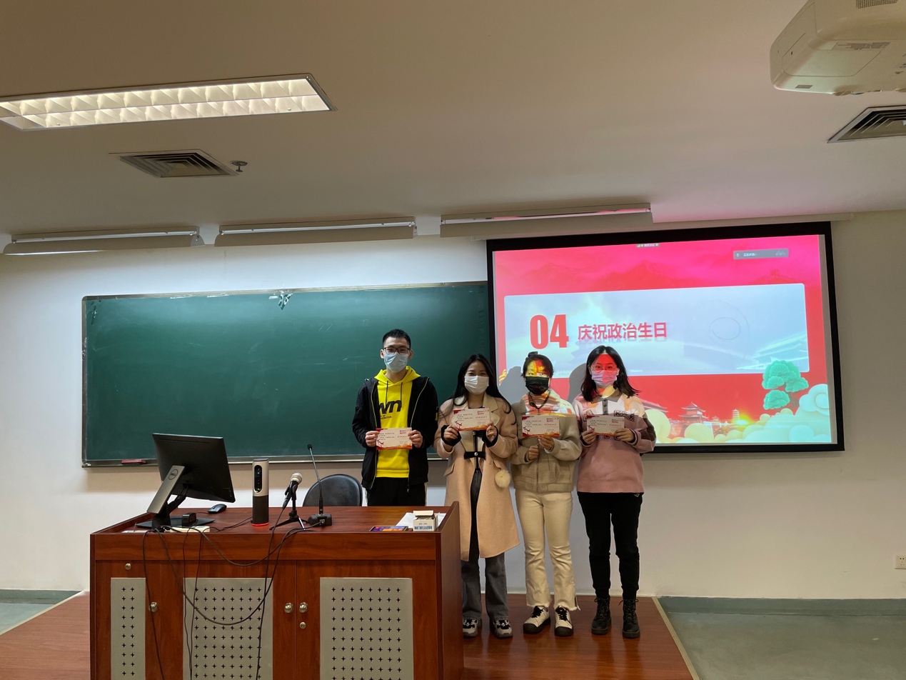 为更好将二十大精神内化于心外化于行,加强党员党性教育,激发党员政治热情,推动学习贯彻党的二十大精神往深里走、往实里走、往心里走,两支部为第四季度入党的11位党员举办庆祝政治生日活动,并赠送党员政治生日卡。文学院2022级硕士生第一党支部李瑞雨表示,党员的政治生命属于党。“政治生日”是党员个体的政治“成人日”“感恩日”。过“政治生日”,在个人维度上,就是为了校准目标、方向、理想,时刻紧绷纪律规矩这根弦,更好地永葆先进性、纯洁性。滚球买球的app官网2021级经济硕士党支部刘铭丞表示,希望通过“政治生日”这一政治仪式激励同志们在坚定理想信念,深化理论武装上再下功夫;在立足主责主业,努力科研创新上再下功夫;在开展实习实践,扎根基层奋斗上再下功夫。