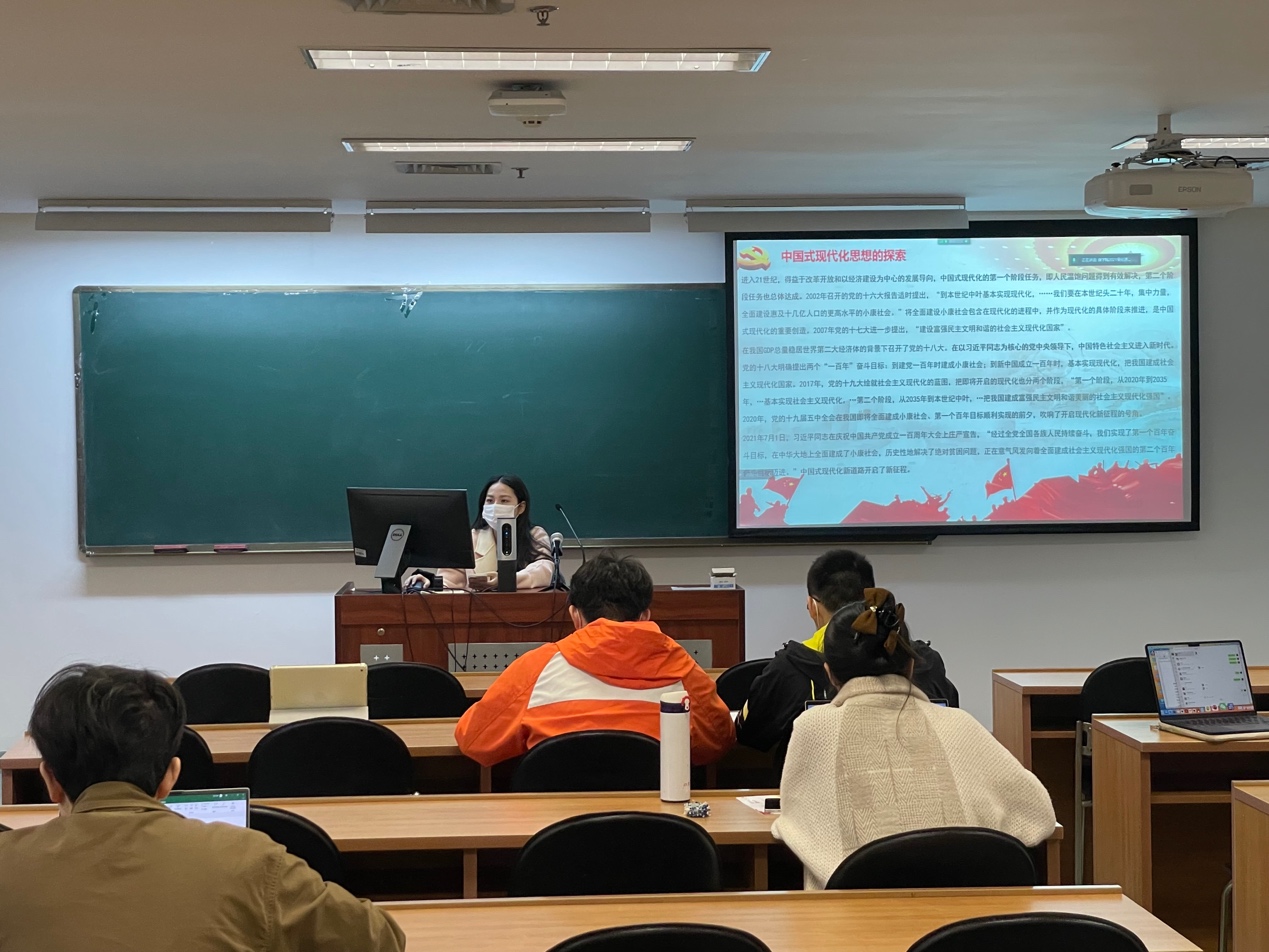 滚球买球的app官网2021级经济硕士党支部岳雨琪、文学院2022级硕士生第一党支部邹雯倩分别围绕中国式现代化、二十大报告中的数字化表达等方面开展领学联学。岳雨琪从探索中国式现代化思想内涵等五个方面开展阐述,认为中国式现代化道路不仅是马克思主义经济学说同中国具体实际相结合的道路,也是现代化的一般理论与中国国情结合的道路,是发展中大国特有的现代化之路。邹雯倩同志从“1”个主题、“3”件大事等视角全面解读数码“201316426155325”的具体含义,并认为该数码是聚焦“五个牢牢把握”的数字化表达,有助于我们准确认知和把握党的二十大报告的精髓要义。