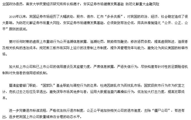 一、要对任何时期的虚假上市重组行为公开追溯信息披露、追溯处罚,鼓励有效融资;修改惩罚条款,提高虚假陈述、造假者及相关机构的违法成本;规范新三板市场实际上运行的注册制上市制度,提升其管理效率与能力,避免沦为类似美国的粉单市场。