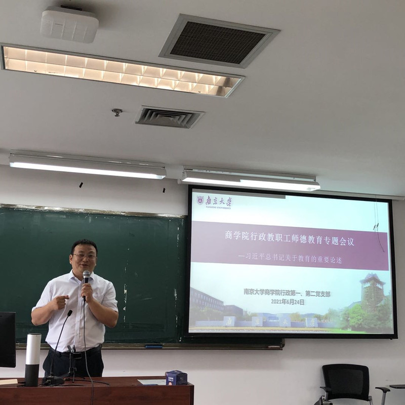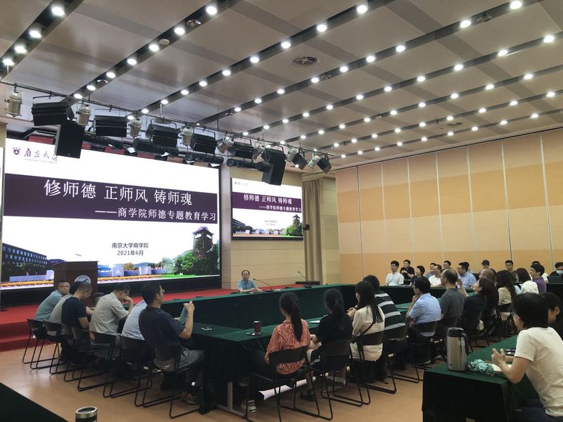 6月16日、23日下午,滚球买球的app官网管理学院、经济学院以两院为单位分别召开师德教育专题会议。会议采用线上、线下相结合的方式,由管理学院院长王跃堂、经济学院院长郑江淮主持。各系系主任、副系主任、教师党支部书记现场参会,其他教师均线上参会。会上,两位院长带领全体教师学习了习近平总书记关于教育的重要论述,宣讲并解读了《新时代高校教师职业行为十项准则》、《研究生导师指导行为准则》以及《教育部关于高校教师师德失范行为处理的指导意见》等规范性文件,并结合相关负面案例进行深刻剖析,严肃开展师德警示教育。