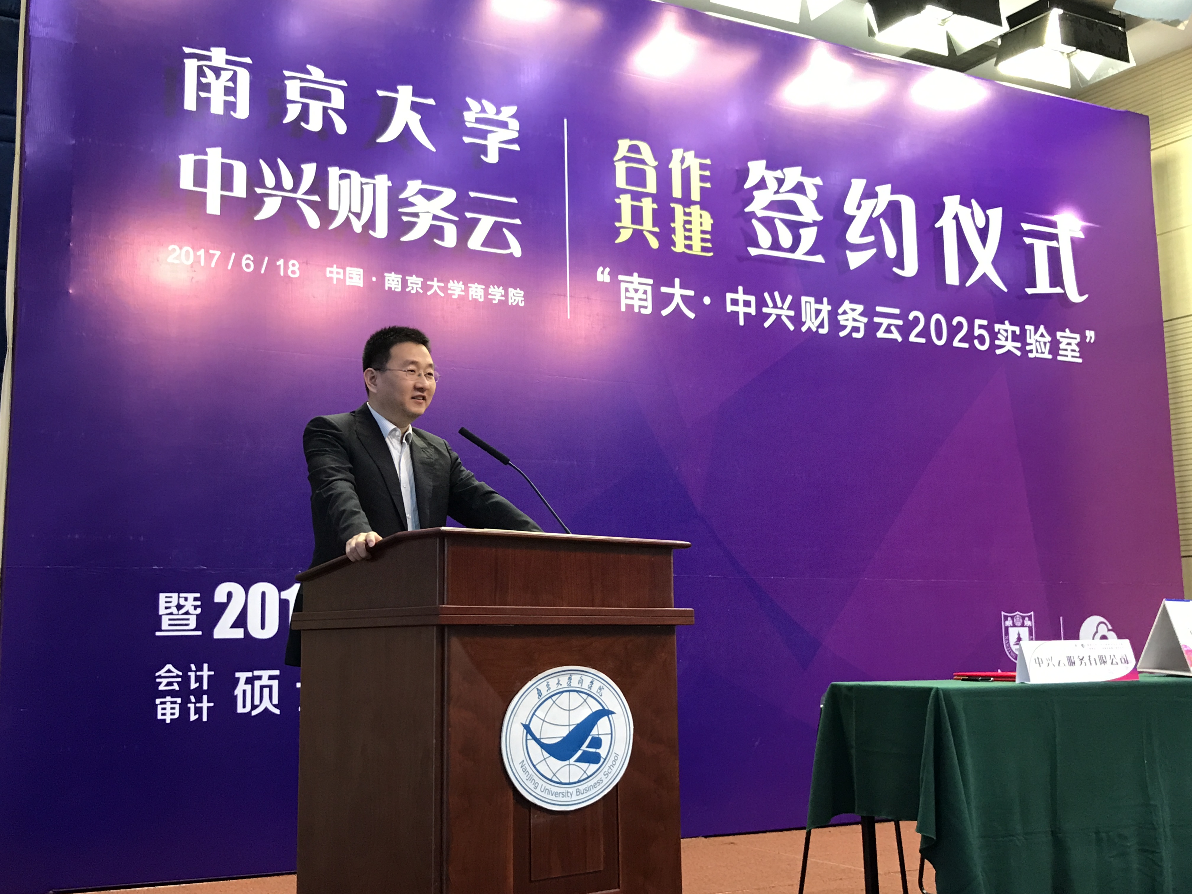 在滚球买球的app官网党委常务副书记杨忠、中兴通讯股份有限公司集团副总裁陈虎、滚球买球的app官网研究生院副院长朱易然、滚球买球的app官网院长沈坤荣、滚球买球的app官网管理学院院长王跃堂、滚球买球的app官网创新创业与成果转化工作办公室主任高新房等双方领导的见证下,中兴通讯全球财务云总监孙彦丛女士、滚球买球的app官网会计学系主任陈冬华教授分别代表中兴财务云、滚球买球的app官网会计学系签署了合作协议。