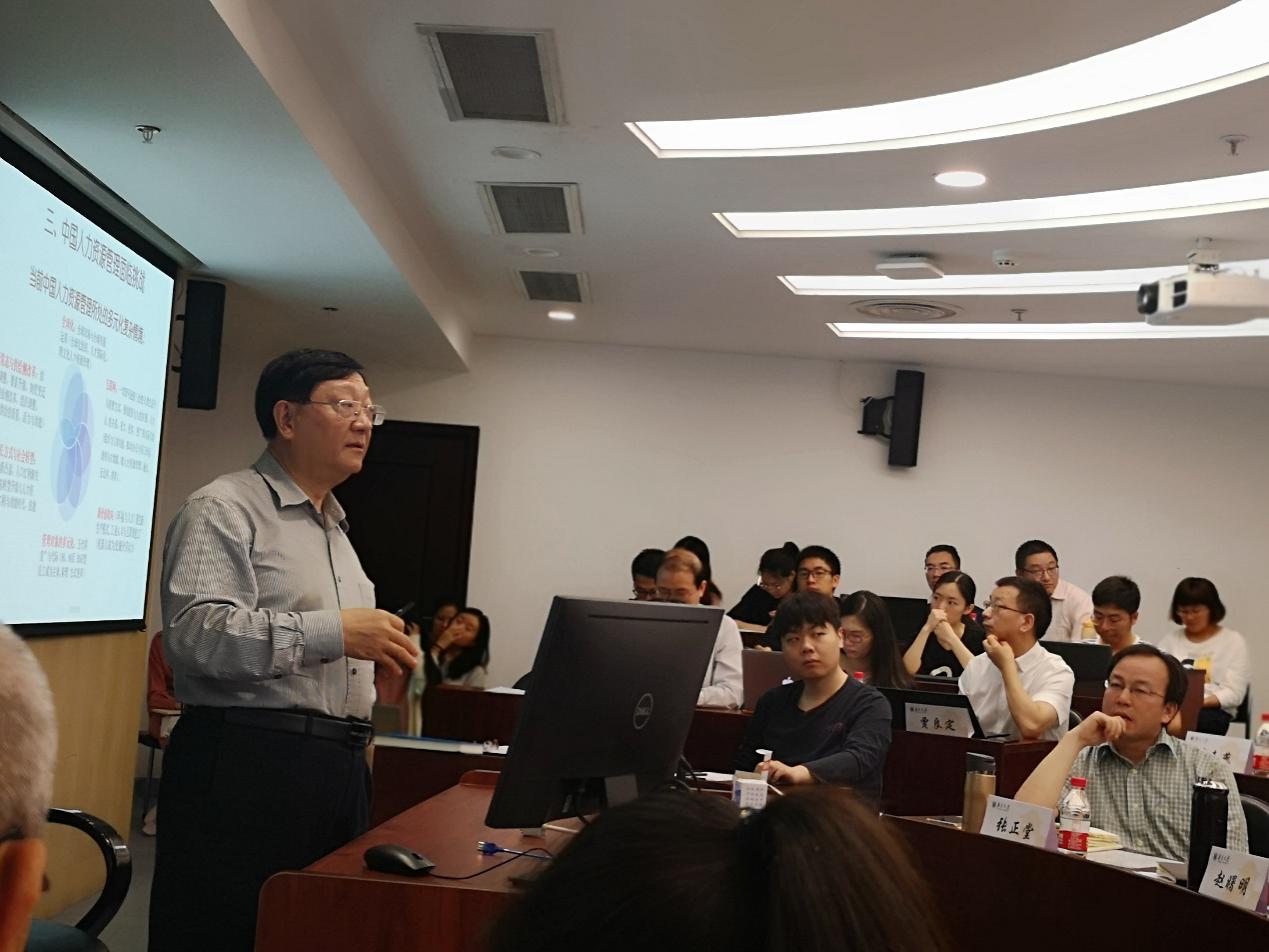 上午论坛正式开始后由人力资源管理学系程德俊教授主持。论坛首先由赵曙明教授作了题为“新中国七十年人力资源管理:发展、研究、挑战与展望”的主题报告。赵曙明教授提出,以移动互联网信息技术+可再生能源技术为基础的第三次工业革命正在颠覆着人类社会的生产、生活及交易模式,而以绿色要素投入为特征的第四次工业革命即将来临。当前多元化的复杂环境使人力资源管理面临巨大挑战,包括信息化、数字化、智能化背景下如何创新人力资源管理模式,提升人力资源管理效能,供给侧改革背景下如何有效提升人力资源供给等,新的挑战需要新的应对方式。之后,赵曙明教授对中国人力资源管理的未来进行了展望,包括用“本土化”的理念构建中国人力资源管理的理论和方法,通过全球化的整合打造基于人才管理的核心竞争力等。