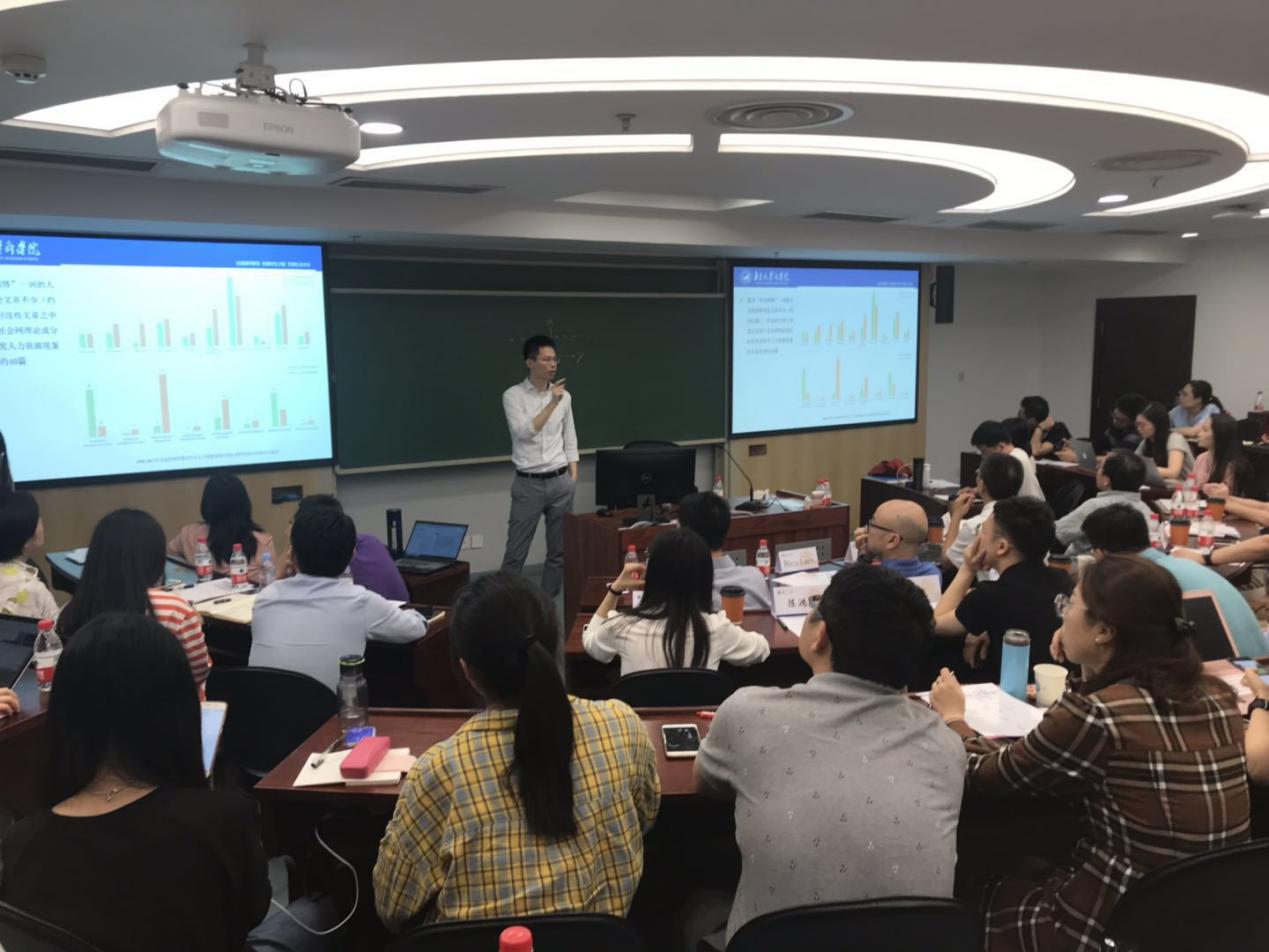 最后由滚球买球的app官网人力资源管理学系助理教授陈鸿志老师为我们介绍了《社会网理论与方法在人力资源管理研究中的应用》。他先从社会网理论视角与人力资源管理研究关注点的不同出发,帮助大家更好地理解社会网理论视角,再深入浅出从专业术语到相关理论的讲解,为大家介绍了社会网研究(SNA),并从招聘、薪酬与考核、培训与开发、战略人力资源管理等多个方面介绍了社会网理论与方法在人力资源管理研究中的已有的和可能的应用,为大家日后的研究拓宽思路和方向。最后,陈老师强调,社会网视角的应用必须与具体研究问题紧密相关,如果为了应用而应用则是本末倒置。陈老师的观点得到了大家的一致认同和赞赏。