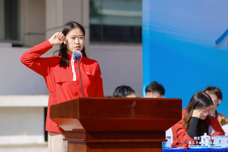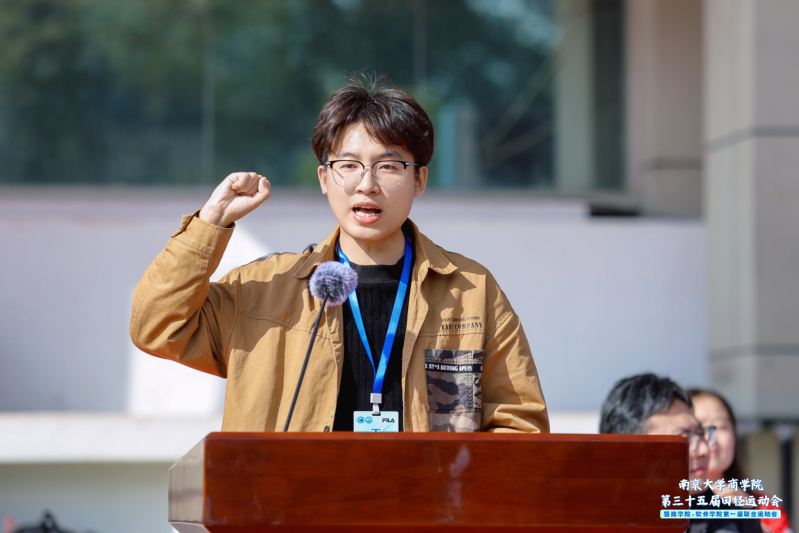 在滚球买球的app官网、软件学院两院师生面向国旗齐唱国歌后,安同良院长致辞。他指出,滚球买球的app官网始终着力构建完善的师生体育运动支持体系,营造良好的体育运动环境。2025年,滚球买球的app官网与软件学院强强联合、双向奔赴,以开展软工经济创新班、软工商业创新班两个双学位项目为契机,共同培养数智经济时代的跨界创新者。希望全体运动员能够在竞赛中展现刚健有为、自强不息的青春形象,在学习中充分展现昂扬向上的精神风貌,在奋斗中练就过硬本领,以青春奋进助力中国特色世界一流南大建设。