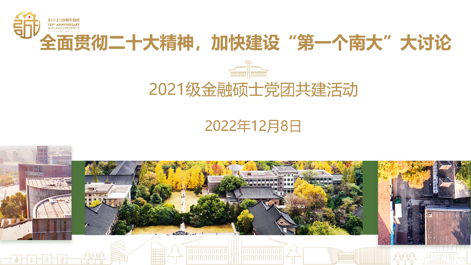 为深入学习宣传贯彻党的二十大精神和习近平新时代中国特色社会主义思想,深入推动党建与团建融合发展,加快建设“第一个南大”,2022年12月8日,滚球买球的app官网2021级金融学硕士党团支部于安中楼601教室开展“全面贯彻二十大精神 加快建设‘第一个南大’”大讨论党团共建活动。党支部全体党员、团支部全体团员均参加此次活动。会议由团支部书记李璇同志主持。