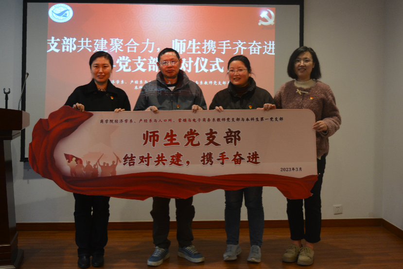 优良传统代代传,师生共建谱新篇。参观结束后,全体师生党员走进教室,开展面对面的深入交流讨论。首先,高波老师、李小琳老师、路瑶老师与罗洁老师分别代表各教师支部与本科生第一党支部共同揭牌,宣布经济学系、产经系与人口所、营销与电子商务系教师党支部与本科生第一党支部正式结对,期待未来能够开展更加丰富多样、理论与实践深度兼具的学习与交流活动。