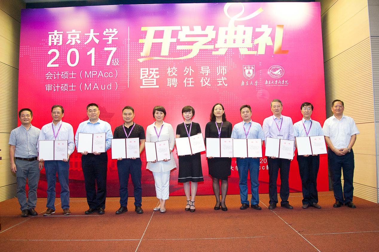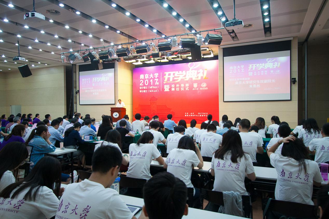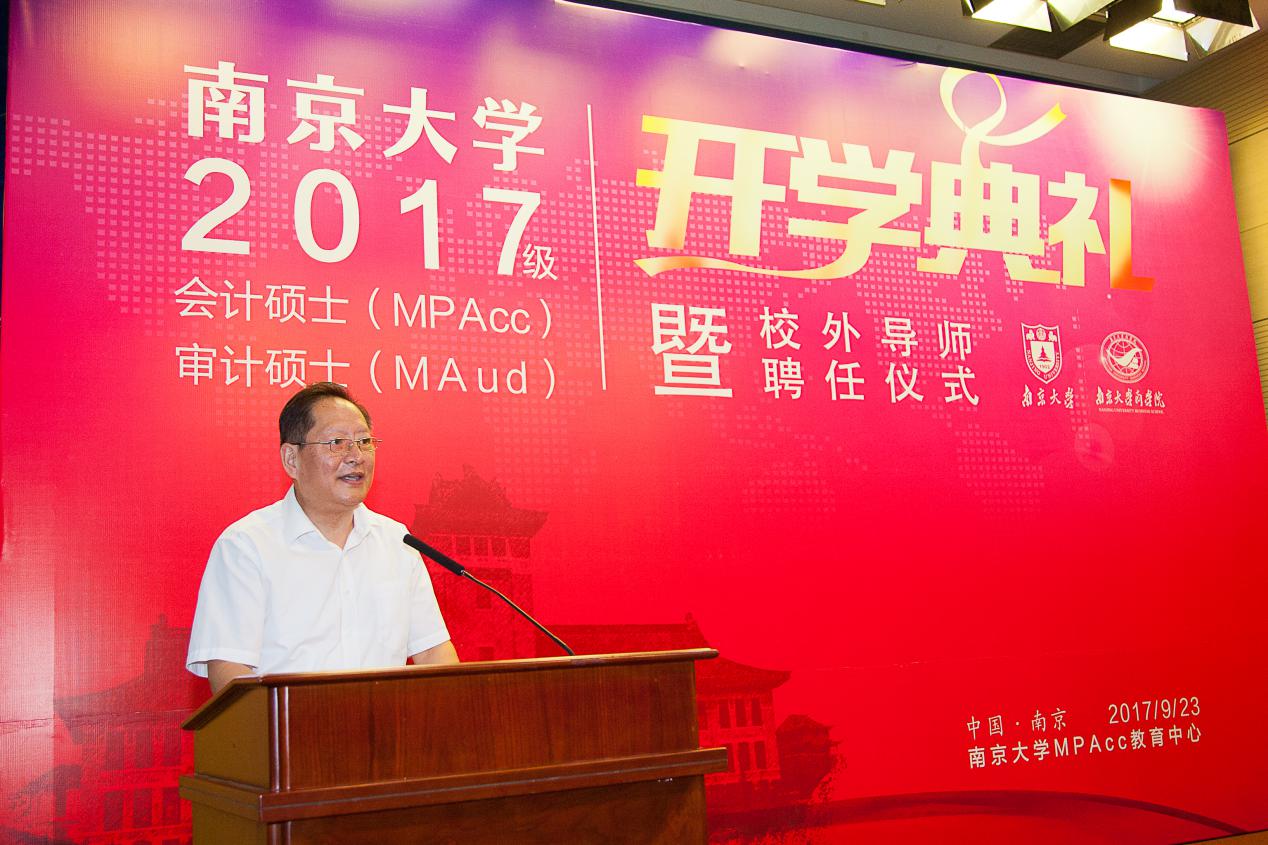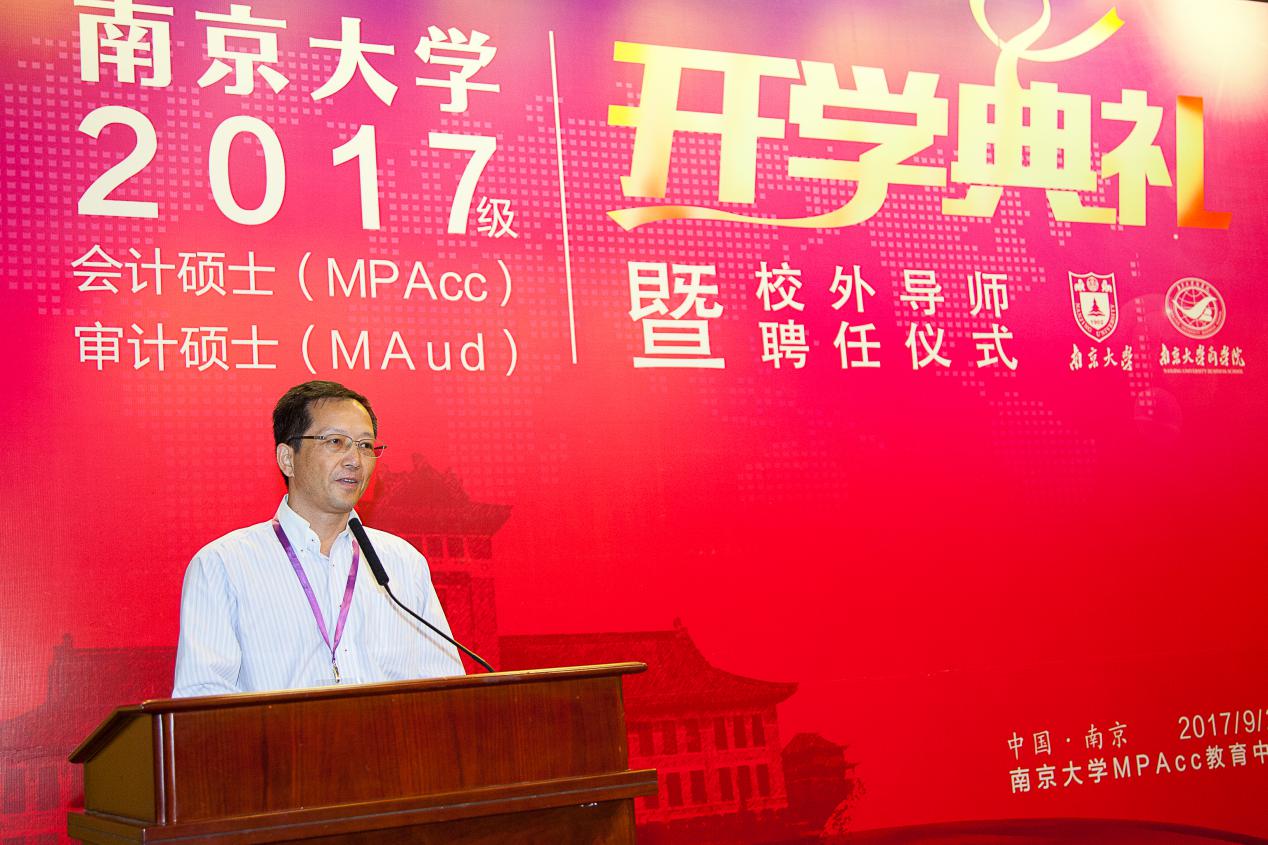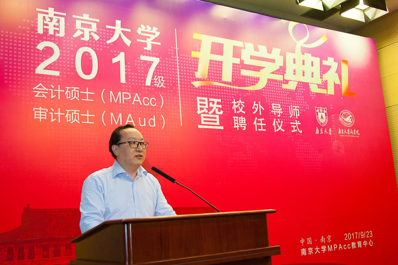 2017年9月23日上午,滚球买球的app官网2017级会计硕士、审计硕士开学典礼暨校外导师聘任仪式在滚球买球的app官网安中楼二楼鸿意报告厅隆重举行。出席此次典礼的嘉宾和领导有:江苏省地方税务局江建平局长、江苏省审计学会朱尧平会长、原江苏省国资委黄佩华副主任、原江苏省盐业集团有限责任公司晏仲华总经理、天衡会计师事务所首席合伙人余瑞玉等资深MPAcc校外导师、还有一批即将新聘的校外导师。滚球买球的app官网研究生院朱易然副院长、滚球买球的app官网管理学院刘春林教授,以及会计学系任课教师和来自实务界的40多位校外导师等出席了典礼。典礼由滚球买球的app官网会计学系主任陈冬华教授主持。