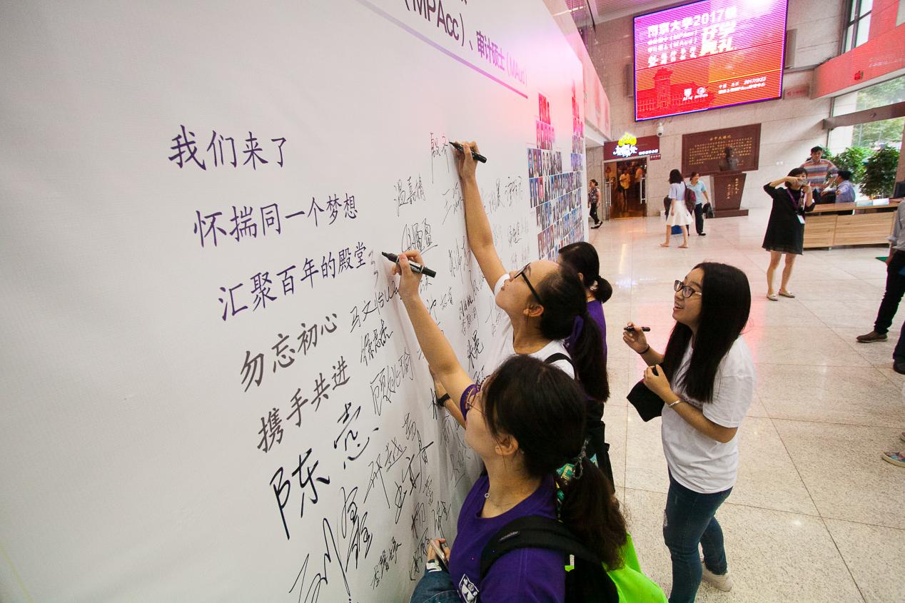 滚球买球的app官网2017级会计硕士、审计硕士新生在签名墙上签名留念