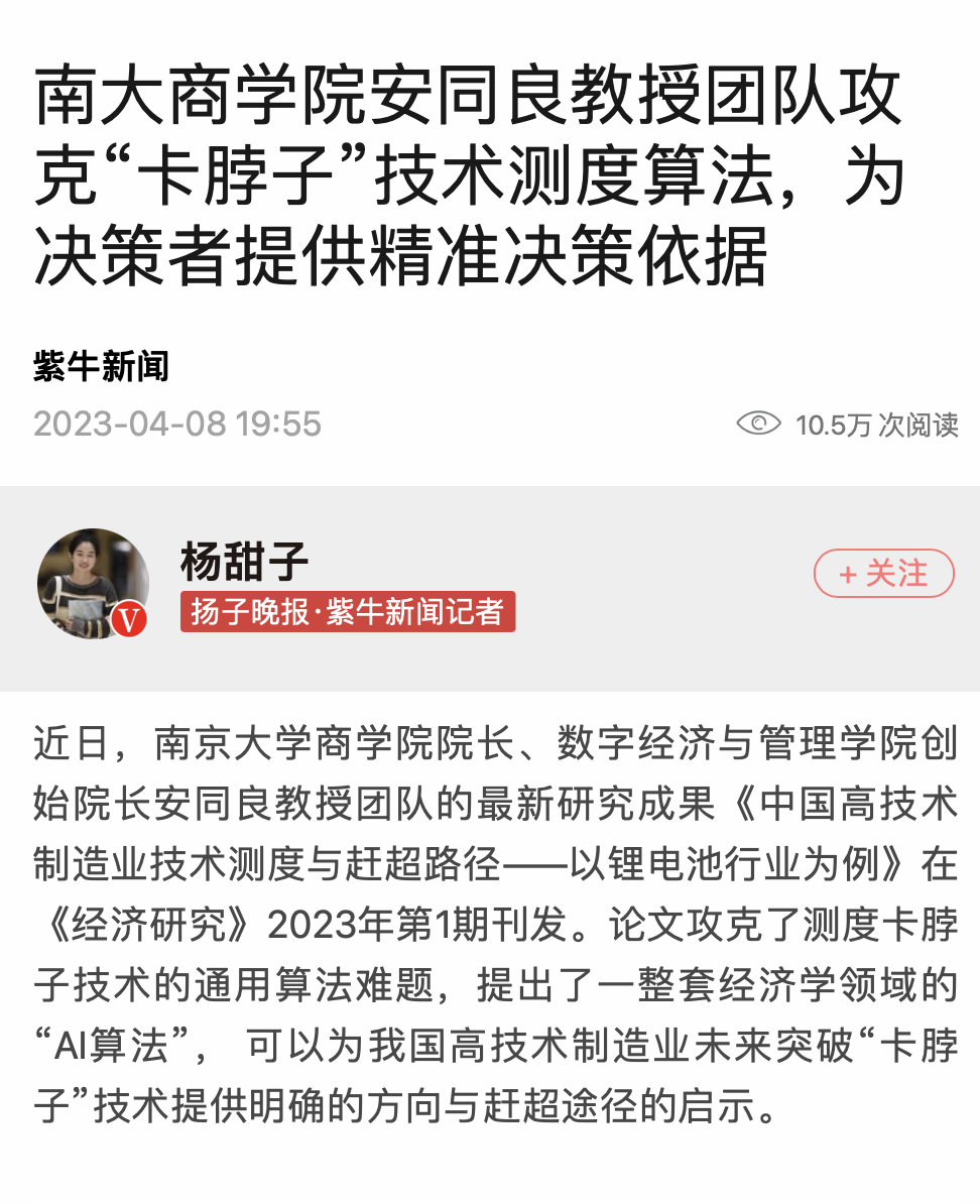 滚球买球的app官网安同良教授团队“卡脖子”技术测度算法研究受到社会广泛关注