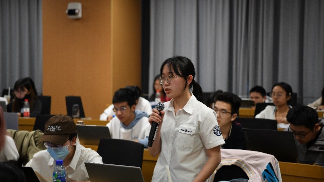 来自中国人民大学财政金融学院本科金融第二党支部的义艺同学汇报了自己对习近平总书记在中国人民大学考察调研时发表的重要讲话的学习体会。她认为,习近平总书记的讲话发人深省也令人振奋,在中国实现第二个百年奋斗目标的关键时间里,青年们理应肩负起时代赋予的光荣使命,立足中国国情和自身专业,成长为助力国家发展的栋梁之材。
