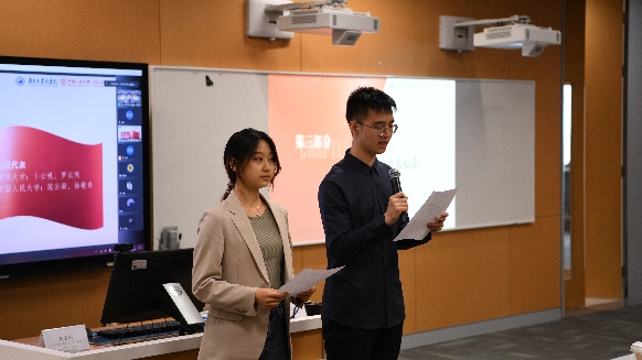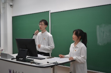 滚球买球的app官网本科生第一党支部卜云帆、罗云芮同志和中国人民大学财政金融学院本科金融第二党支部范云凝、徐敬奇同志作为学生代表宣读倡议、共表心志。