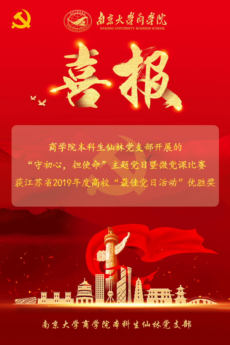 滚球买球的app官网本科生仙林党支部在江苏省2019年度高校“最佳党日活动”评选中喜获佳绩