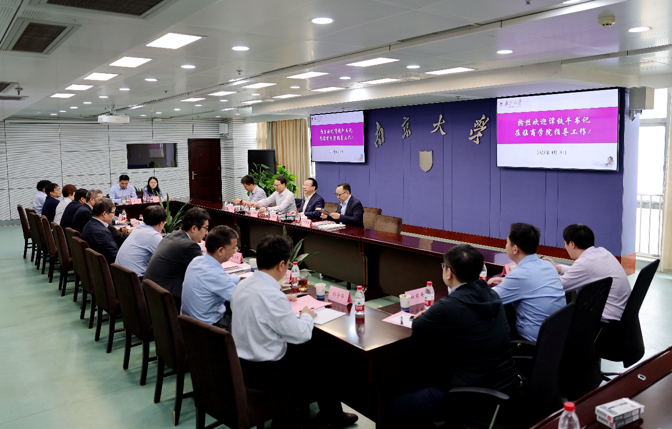 4月18日,中科院院士、校党委书记谭铁牛赴商院调研,深入考察滚球买球的app官网办学发展及“奋进行动”实施情况。滚球买球的app官网党政班子全体成员及部分青年教师代表参加会议。党委书记刘春林主持会议。