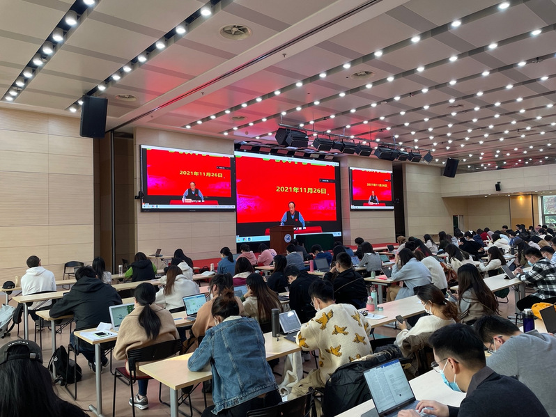11月26日下午,滚球买球的app官网党史学习教育专题报告会在仙林校区举行。中共一大会址纪念馆原馆长、中国共产党创建史研究中心主任张黎明以“从石库门到天安门——回眸党的艰苦创建和新中国的辉煌成就”为主题作报告。校党委常务副书记杨忠主持报告会。