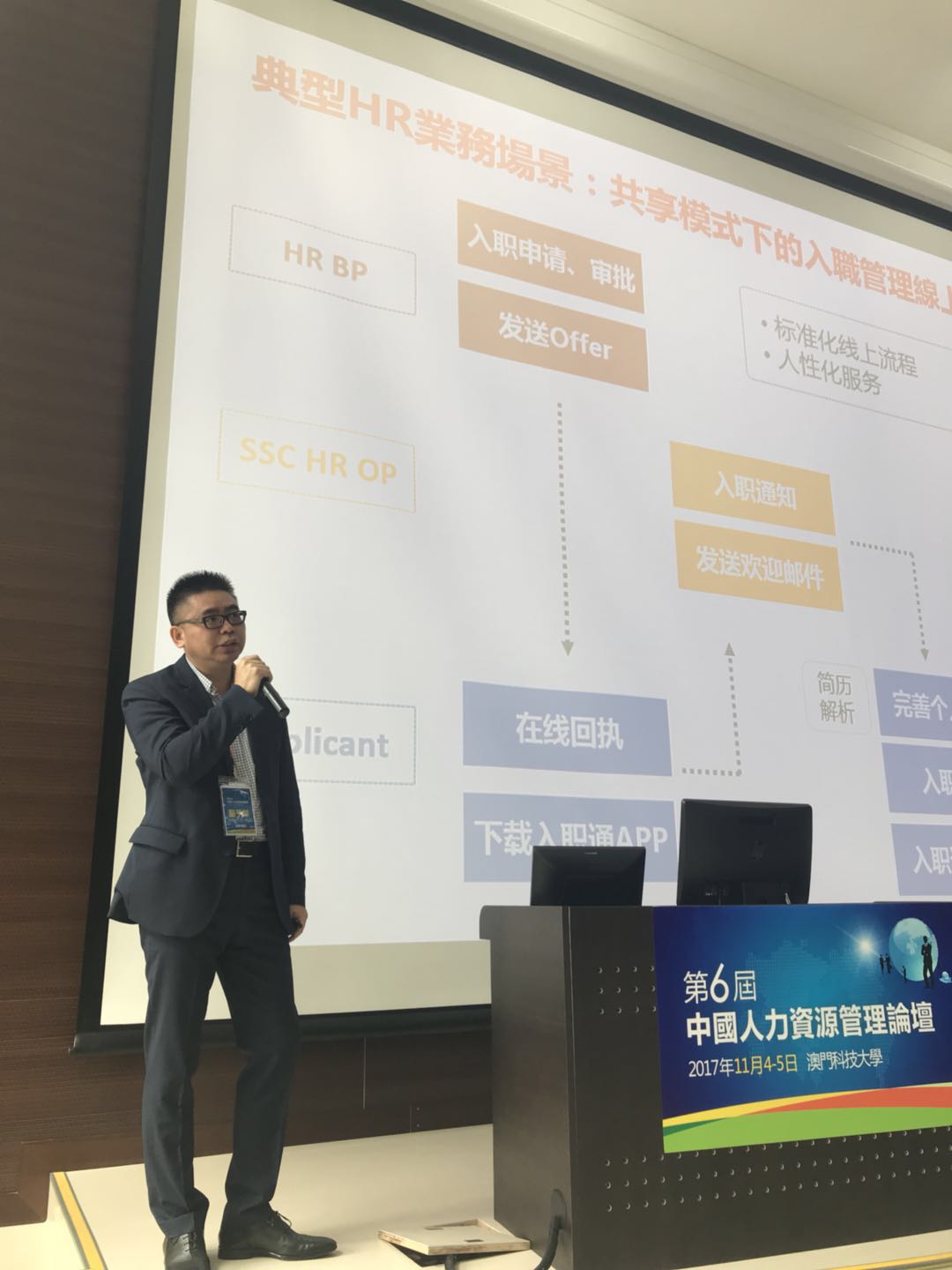 11月5日上午首先由澳门科技大学滚球买球的app官网管理系系主任石贵成教授主持两位企业家的主题演讲。中科创大创始人、总裁,中科招商合伙人、联席总裁刘继军作了题为“创业企业引领新雇佣时代”的报告。分享了他对创业企业人才需求的理解,提出了以“阿米巴模式+同盟关系”为特点的新雇佣关系作为解决问题的钥匙。用友(澳门)有限公司董事总经理刘予杰则作了题为“人力资源智慧云,将管理实践带入高校教学”的报告, 介绍了用友人力资源智慧云的服务架构,以及人力资源管理沙盘模拟实训在高校实践教学中的应用。