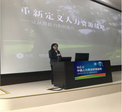 下半场主题报告由南开大学的崔勋教授主持。首先,北京大学国家发展研究院BiMBA滚球买球的app官网院长、金光管理学讲席教授陈春花教授做了题为“重新定义人力资源战略”的报告。陈教授从当前组织管理面临的核心挑战“驾驭不确定性”出发,指出组织成员拥有持续创造力是根本解决之道。组织要在巨变时代获得持续的竞争优势,关键在于人力资源和战略管理的高度契合。陈教授同时从实践的角度给出了人力资源管理如何变革以提升与战略管理的协同效率的具体措施,包括人力资源管理的角色转变、建立员工和组织共享的平台等等,并用一些企业的实际案例来诠释这些具体策略。