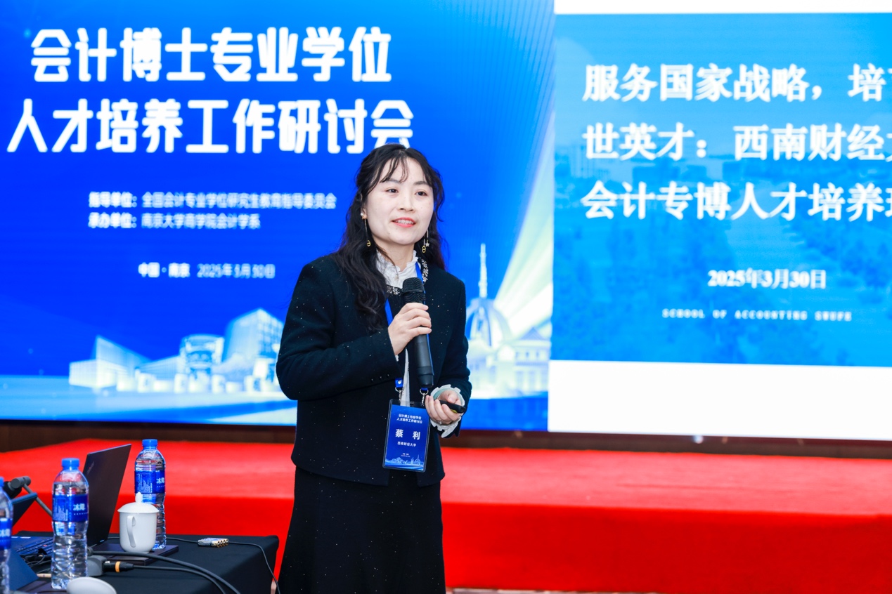 会上,中山大学管理学院会计专博学术主任郑颖副教授、西南财经大学会计学院专业学位教育中心主任蔡利教授分别就本单位会计专博人才培养工作进行报告分享。