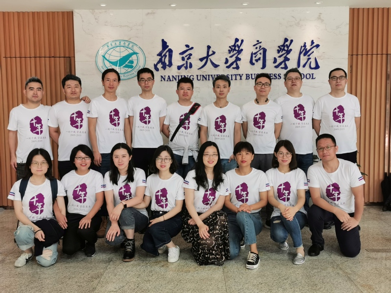 王老师和我们谈起了这十年系里的变化。十年里,中国的经济飞速发展,商业形态和环境也发生了巨大变化,系里学科研究方向也在不断与时俱进,有了很多新的前沿的内容。王老师在这些前沿方向的指导给了同学们在工作上一些新的启示和帮助。同学们也纷纷跟老师汇报了各自工作上的进展,就好像游子回到家里骄傲地和父母亲述说在外面的见闻和自己取得的小小成绩。时间飞快的度过,同学们和老师相聚一个多小时,合影留念后又要分别。临别时,老师说多回来看看,不要隔的时间那么长。