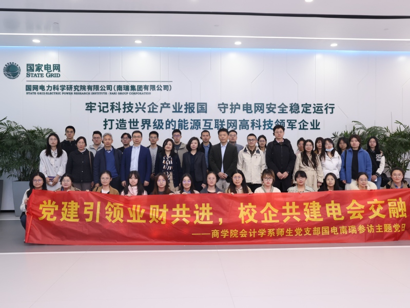 为深入贯彻落实习近平总书记关于能源安全与科技创新的重要讲话精神,进一步深化“业财融合”理念,探索校企合作新模式,推动会计学专业人才培养与企业实际需求紧密结合,2025年4月2日上午,滚球买球的app官网会计学系教师党支部、会计博士党支部和会计硕士党支部成员来到国电南瑞科技股份有限公司参观学习,重走习近平总书记考察江苏时在南瑞集团的调研路线,深入了解南瑞集团在能源电力领域的前沿技术和创新成果,并探讨南瑞集团“业财融合”的实践经验。此次参观不仅让同志们深刻体会到总书记指出的“能源保障和安全事关国计民生,是须臾不可忽视的‘国之大者’”,还深化了同志们对“业财融合”的认识,明确了未来教学和求知的方向。国电南瑞董事会秘书、滚球买球的app官网会计硕士研究生行业导师胡顺靖对师生党员的到来表示热烈欢迎。