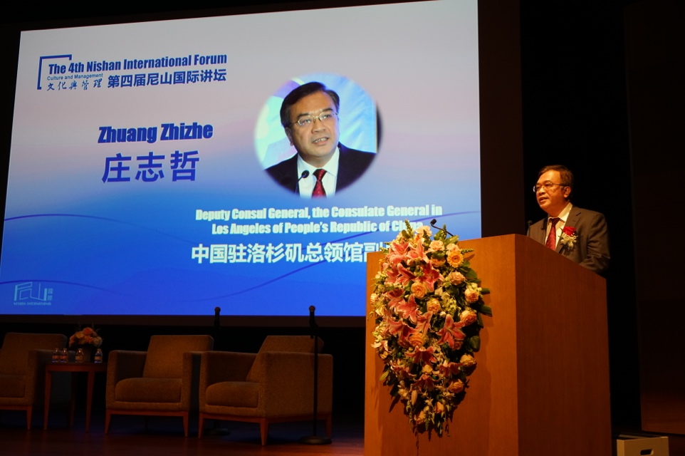 首先,中国驻洛杉矶总领馆副总领事庄志哲先生致辞。他说,今年恰逢中国改革开放40周年,正是有了“平等、共赢、协调、共享”这样的包容性发展理念,改革开放才成为了人类历史上激动人心的经济发展奇迹。中国的发展是遵循社会规律的包容性发展,中国也始终致力于为世界和平与发展做出贡献。美国是现代管理学理论的发源地,而中国在近几十年的快速发展中,也积累了众多先进的管理学实践经验。希望通过今天的讲坛,让大家跨越文化差异,寻求合作共赢。