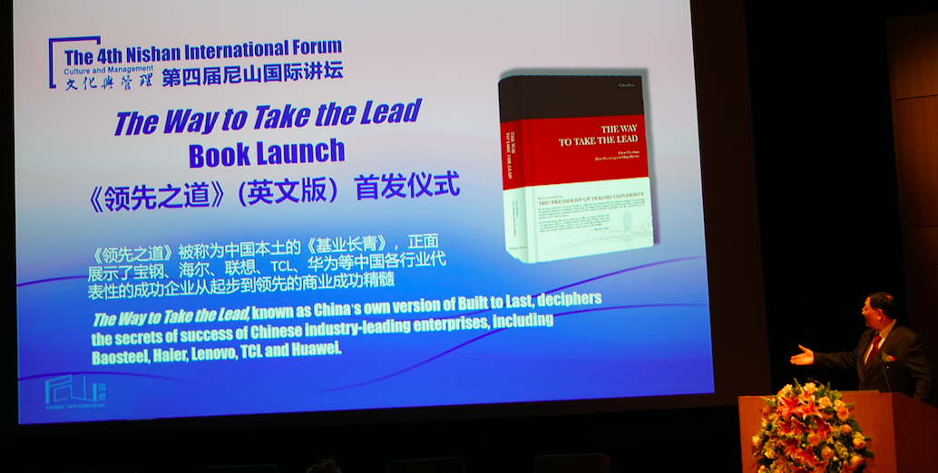 陈春花教授对中国企业成长模式潜心研究已逾十年,后又于2003年在滚球买球的app官网与赵曙明教授合作从事博士后研究,在学术研究中全面展示了宝钢、海尔、联想、TCL、华为等中国各行业代表性的成功企业的管理实践,于2004年出版了《领先之道》第一版,后来进一步研究这几家领先企业,于2014年再版此书。该书可谓是“中国本土的《基业长青》”,详细阐述了从起步到领先的商业成功之精髓。由山东友谊出版社和尼山书屋国际出版公司(美国)联合出版的英文版《领先之道》在此届讲坛上举行首发式。该书英文版为外国管理学者、企业家研究中国管理理论和模式,深入分析中国企业特有的发展模式和成功模型提供了范本,是了解和学习中国企业管理模式、了解中国管理哲学、了解中国文化的优质图书。