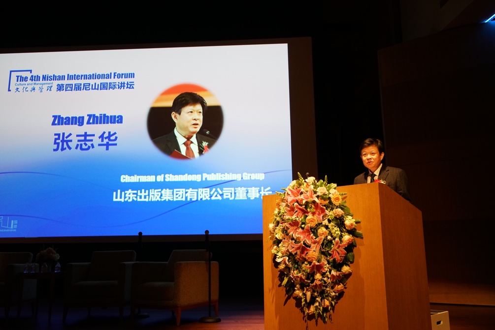 其次,山东出版集团有限公司董事长张志华先生致辞。他希望此次讲坛能进一步推动中外管理学交流,进而向世界展示一个真实的中国、立体的中国、全面的中国,展示一个生机勃勃、愿与各国共同发展的中国。