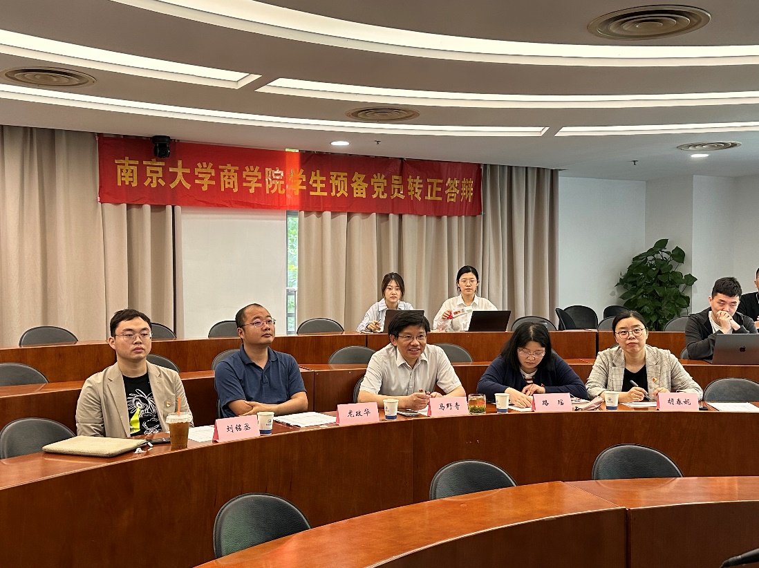 6月6日上午,滚球买球的app官网2024年春季学期学生预备党员转正答辩大会在鼓楼校区安中楼102教室举行。滚球买球的app官网党委委员、研究生教学与培养办公室主任、经济学院副院长马野青,党委兼职组织员、经济学系副主任路瑶,工商管理系教师党支部宣传委员龙政华,院党委秘书、专职组织员胡春妮与辅导员刘铭丞组成答辩小组。共计15位预备党员参加本次转正答辩,部分学生党支部书记列席旁听。
