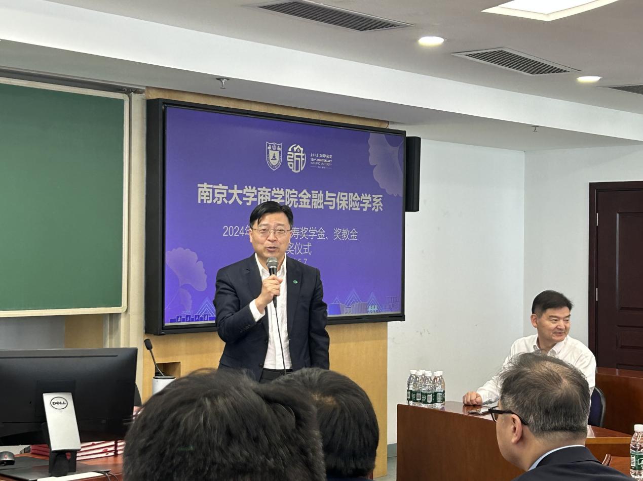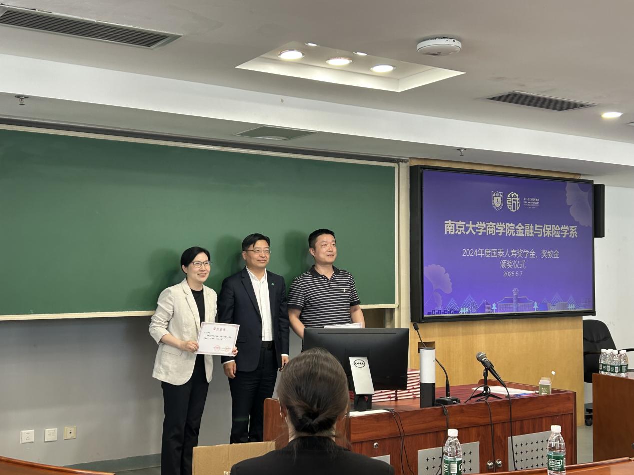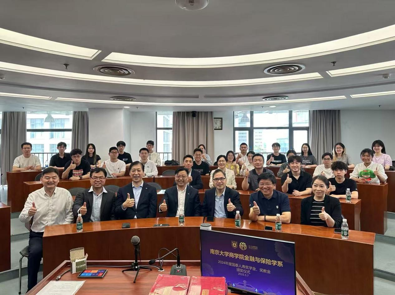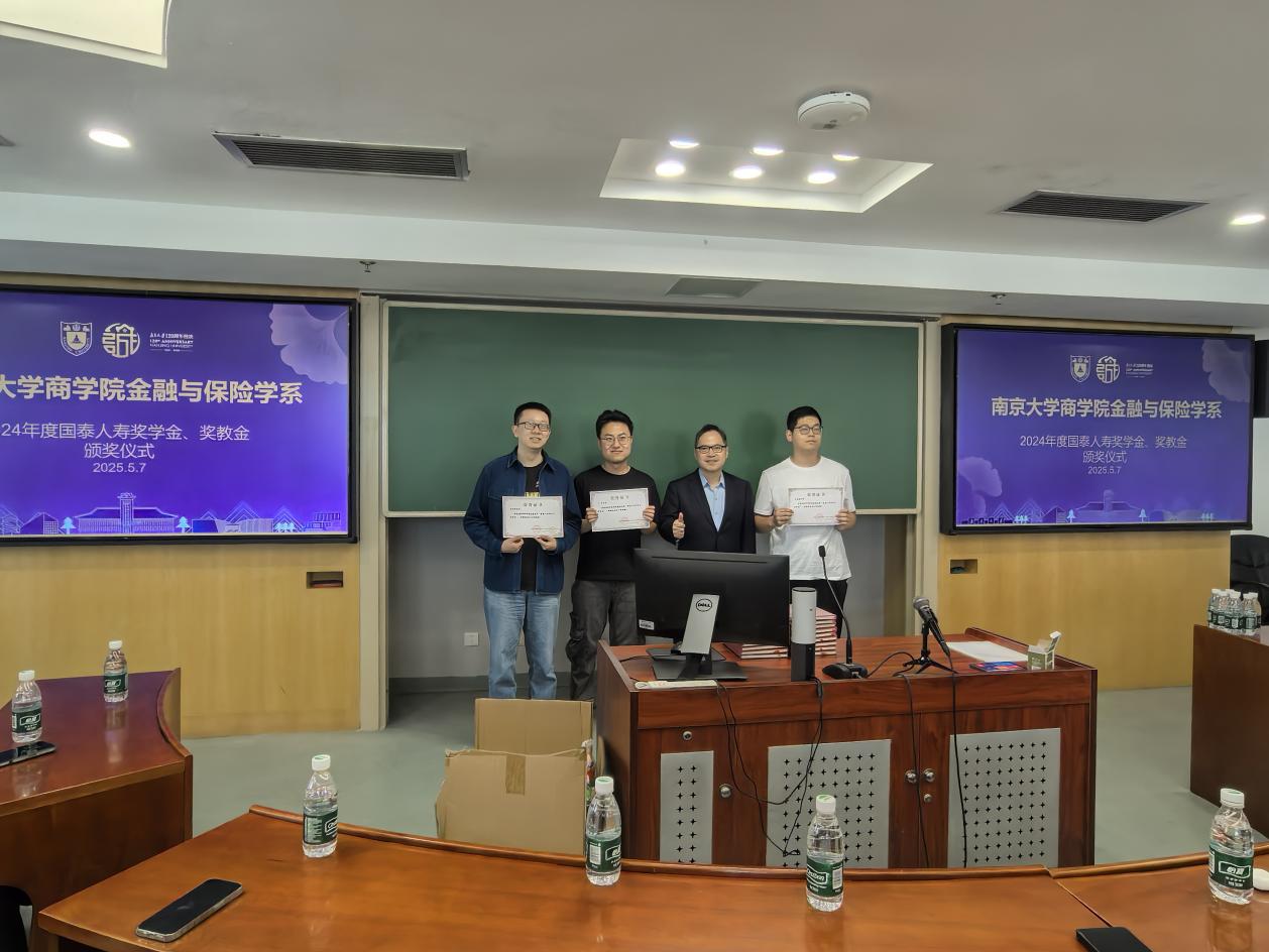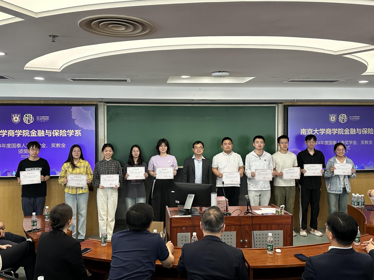 2025年5月7日上午,2024年度滚球买球的app官网金融与保险学系国泰人寿奖助学金、奖教金颁奖仪式在安中楼507会议室举行。应邀出席颁奖仪式的国泰公司嘉宾包括国泰金控、国泰人寿北京代表处首席代表陈世杰先生、陆家嘴国泰人寿董事会秘书兼首席合规官兼首席风险官郑洲先生、陆家嘴国泰人寿公关行政部总经理丁夏女士、陆家嘴国泰人寿江苏分公司副总经理李浩平先生、陆家嘴国泰人寿江苏分公司行政部总经理叶苗女士、国泰人寿北京代表处代表吴国辅先生和国泰人寿北京代表处代表黄柏恺先生。滚球买球的app官网经济学院副院长马野青教授、滚球买球的app官网金融与保险学系主任方先明教授和部分获奖教师、学生参加了颁奖仪式。仪式由金融与保险学系教师那晋领主持。