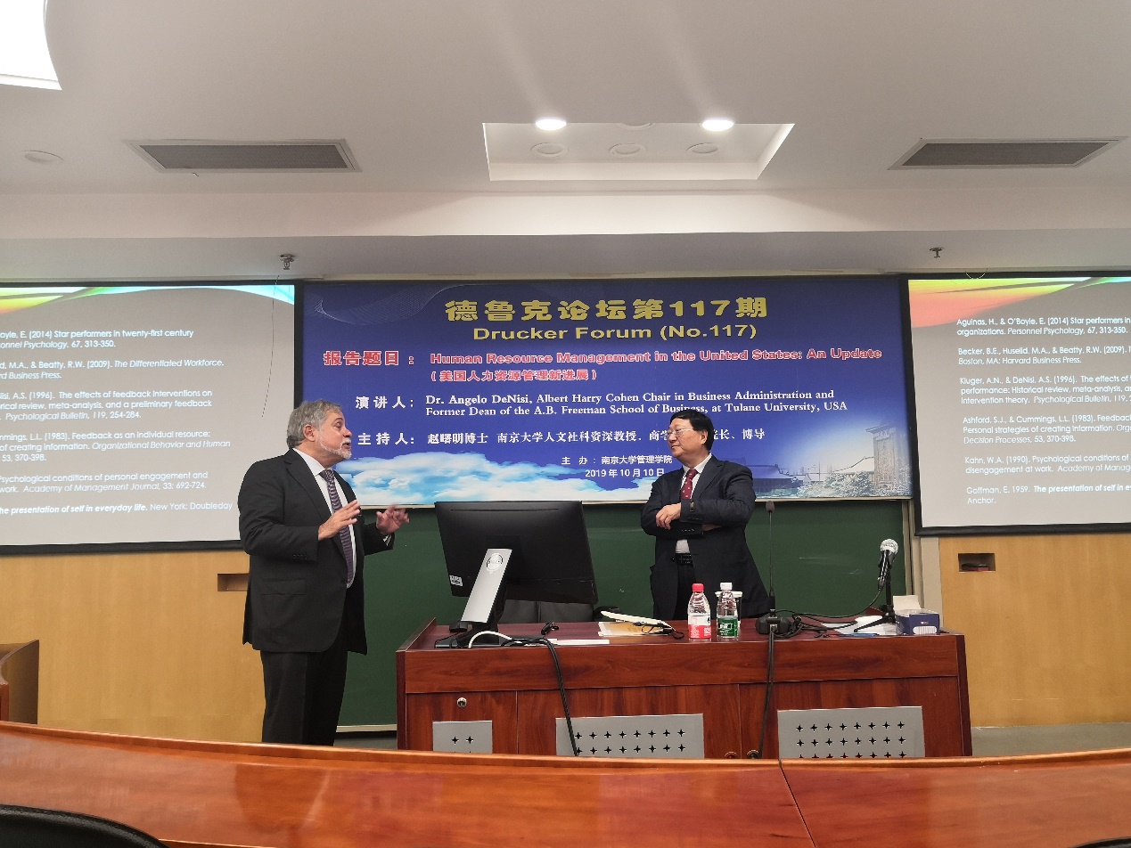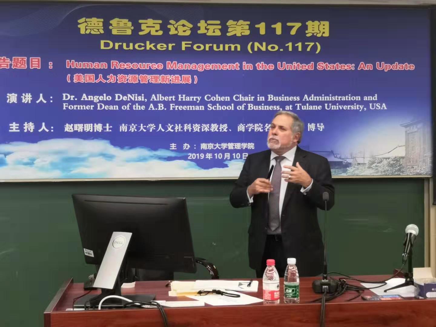 2019年10月10日下午15点,德鲁克论坛第117期在安中楼501教室顺利举行。美国杜兰大学管理学院前院长、赫伯特·海曼(HerbertHeneman)终身贡献奖、SIOP杰出生命科学贡献奖、杜兰弗里曼滚球买球的app官网的杰出教学奖获得者Angelo DeNisi教授受邀作了题为“Human Resource Managementin the United States:An Update”的主题报告。论坛由滚球买球的app官网人文社会科学资深教授、滚球买球的app官网名誉院长赵曙明博士主持。30多位教师、博士生和硕士生参加了本次论坛。