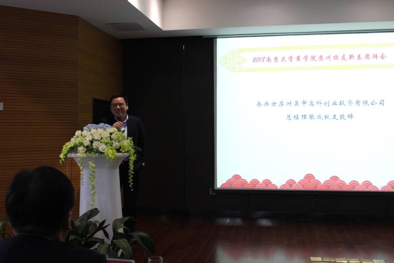 承办方苏州吴中高科创业投资有限公司总经理张成(98经济本)校友致辞