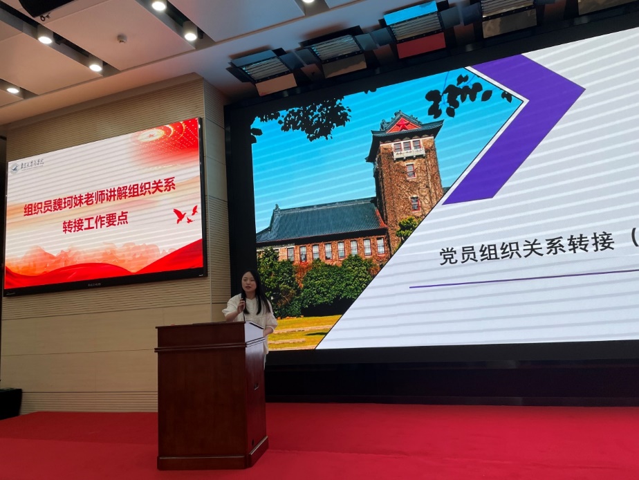 专题党课结束后,院党委组织员魏珂妹讲解了党组织关系转接工作要点。魏珂妹强调,党组织关系转接工作复杂,需要党员本人、党支部委员、党支部书记、院党委老师们齐力并举。党员本人需要问明转去党组织抬头和去向,党支部应做好分类登记工作。经过讲解,与会毕业支部党员对党组织关系转接有了更明朗的了解。