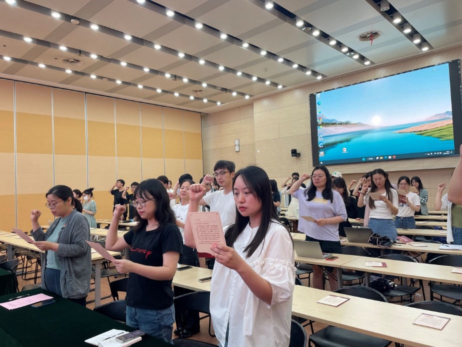 大会最后,2020级国贸硕士党支部书记余嘉莉带领全体党员重温入党誓词,坚定的宣誓声回荡在鸿意报告厅。滚球买球的app官网2023届毕业生党员主题教育大会至此圆满结束。