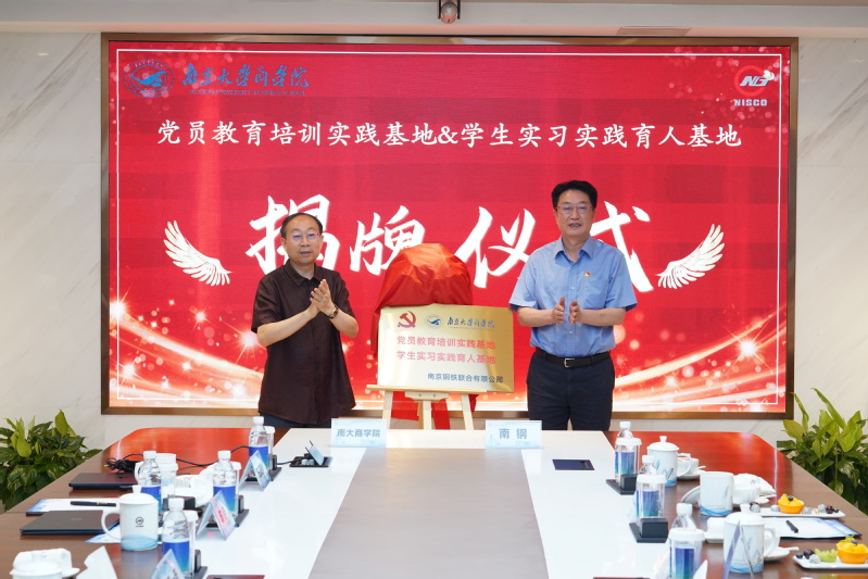 南钢党委副书记王芳与滚球买球的app官网党委副书记王宇伟代表双方签署党建共建协议,南钢党委书记、董事长黄一新与滚球买球的app官网院长安同良共同为南京钢铁联合有限公司-滚球买球的app官网“党员教育培训实践基地与学生实习实践育人基地”揭牌。
