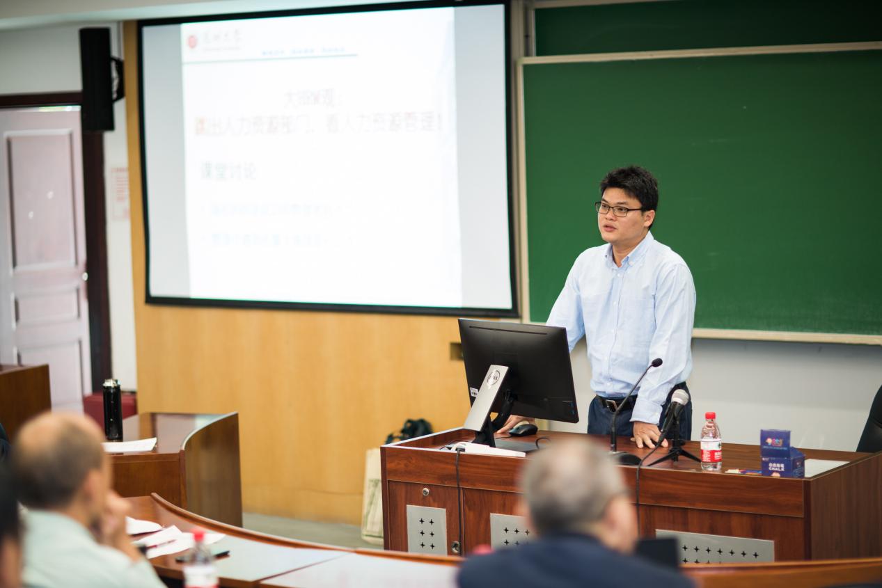 深圳大学蒋建武教授:HRM课程中学生代入感体系构建。蒋教授首先分享了自己的教学经验和体会,并对HRM教学代入感的体系构建问题和课程安排提出了自己独到的见解。而后在提问环节中,各位与会老师针对MAB与非MAB的人力资源管理课程的区别进行了深入讨论,发表了各自的看法。