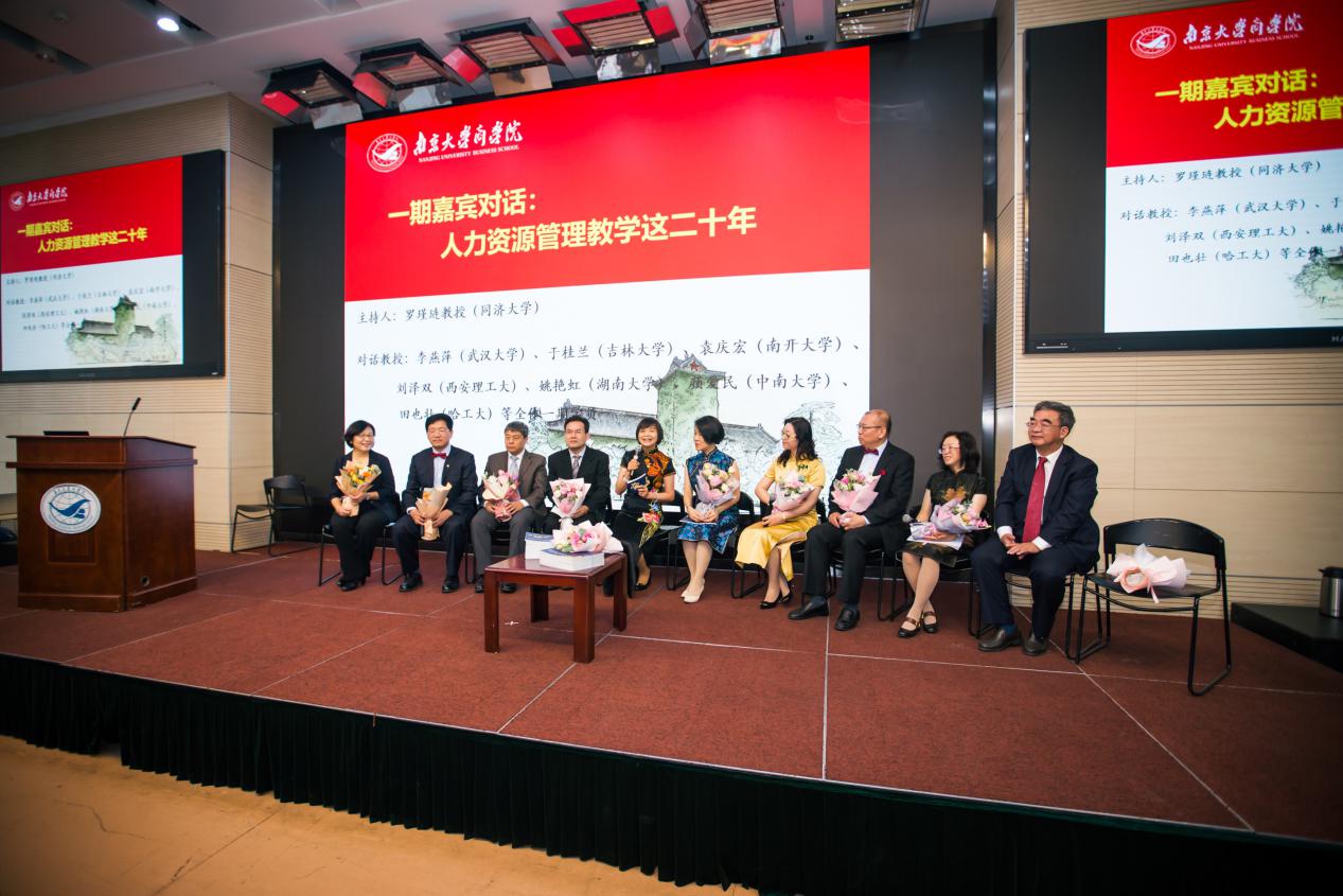 集体合照结束后,由同济大学的罗瑾琏教授主持了“人力资源管理教学这二十年”的嘉宾对话环节,参与该环节的教授包括:李燕萍(武汉大学)、于桂兰(吉林大学)、袁庆宏(南开大学)、刘泽双(西安理工大)、姚艳虹(湖南大学)、颜爱民(中南大学)、田也壮(哈工大)等全体一期学员,他们各自分享了自己从事人力资源管理教学这二十年的心得感悟。