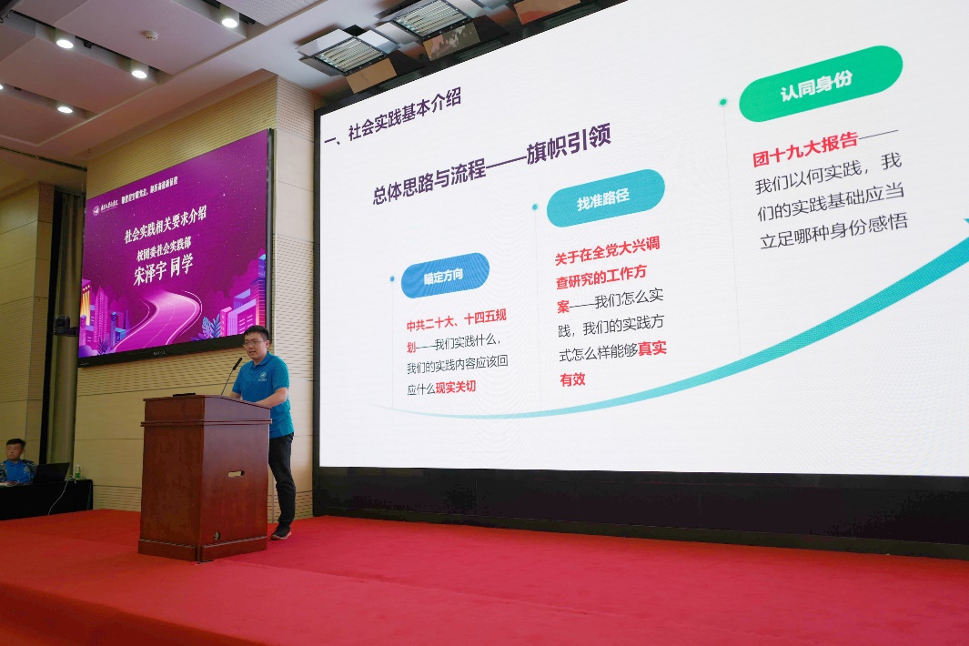 校团委社会实践部宋泽宇同学为大家讲述校团委的社会实践文件精神和相关规范,建议大家在实践过程中瞄准方向、找准路径、认同身份,注意做足安全预案、做好实践记录、备齐报销材料。2021级产业经济学专业殷瑞同学从自身经历出发,从访谈、问卷、报告撰写角度分享了开展社会实践的心得。她进一步分享了社会实践成果转化的经验,提出要用“挑战杯”的长远眼光来看待和要求社会实践。