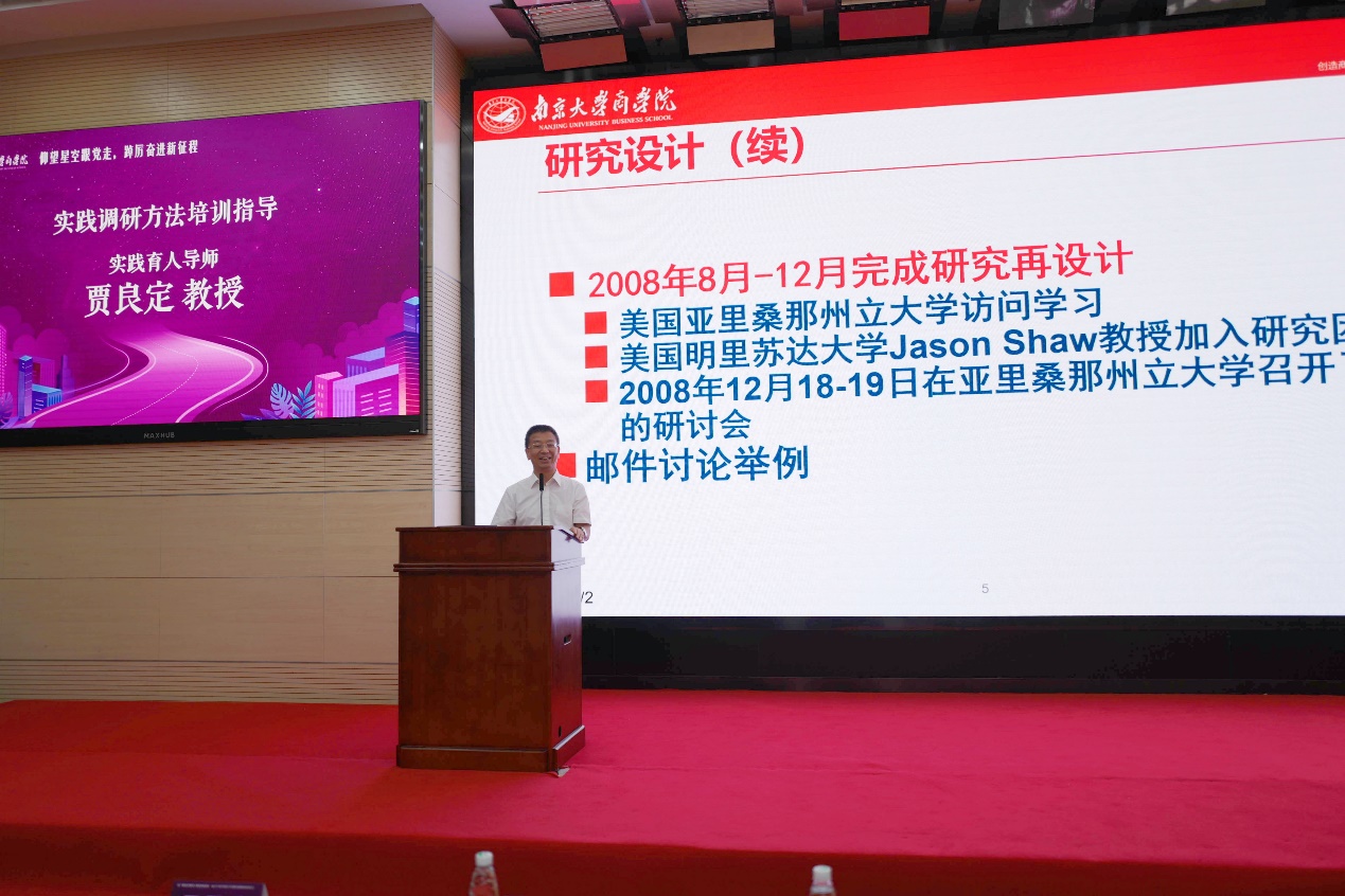 仪式现场邀请了三位嘉宾从实践指导者、实践管理者和实践参与者三个角度为同学们作行前培训,旨在让学生全面了解开展社会实践的要求、方法和技巧。贾良定教授结合两项学术工作,深入浅出地讲述了如何开展科学的调研,他勉励同学们要重视研究设计,多与师长沟通请教;重视研究效果,尽力缩小调研误差;端正研究态度,用真诚打动调研对象。