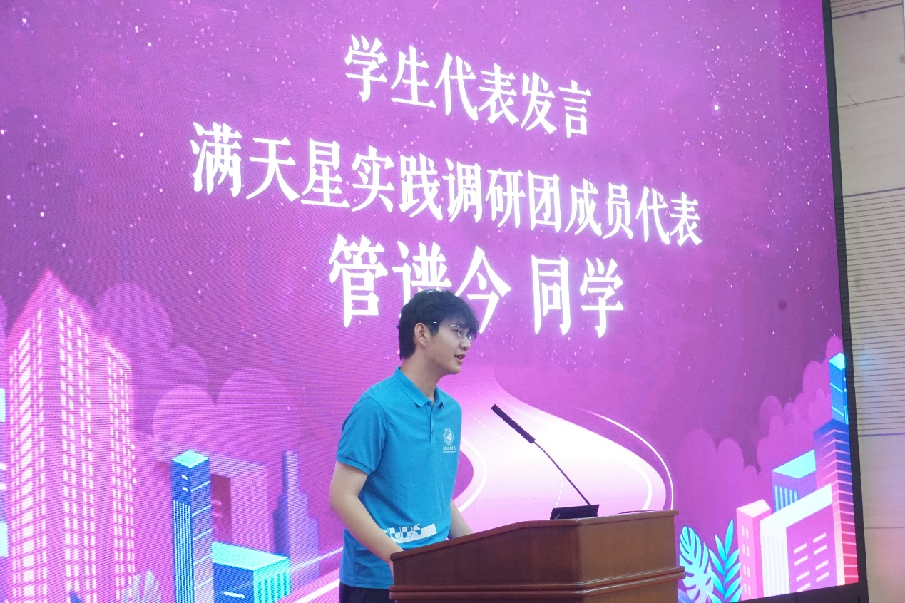 满天星调研团成员代表、22级经济管理试验班管谱今分享了自己对“满天星”的理解,讲述了自己参与满天星实践调研团的切身感受,并郑重承诺将在社会大熔炉中接受锻炼、增长才干。