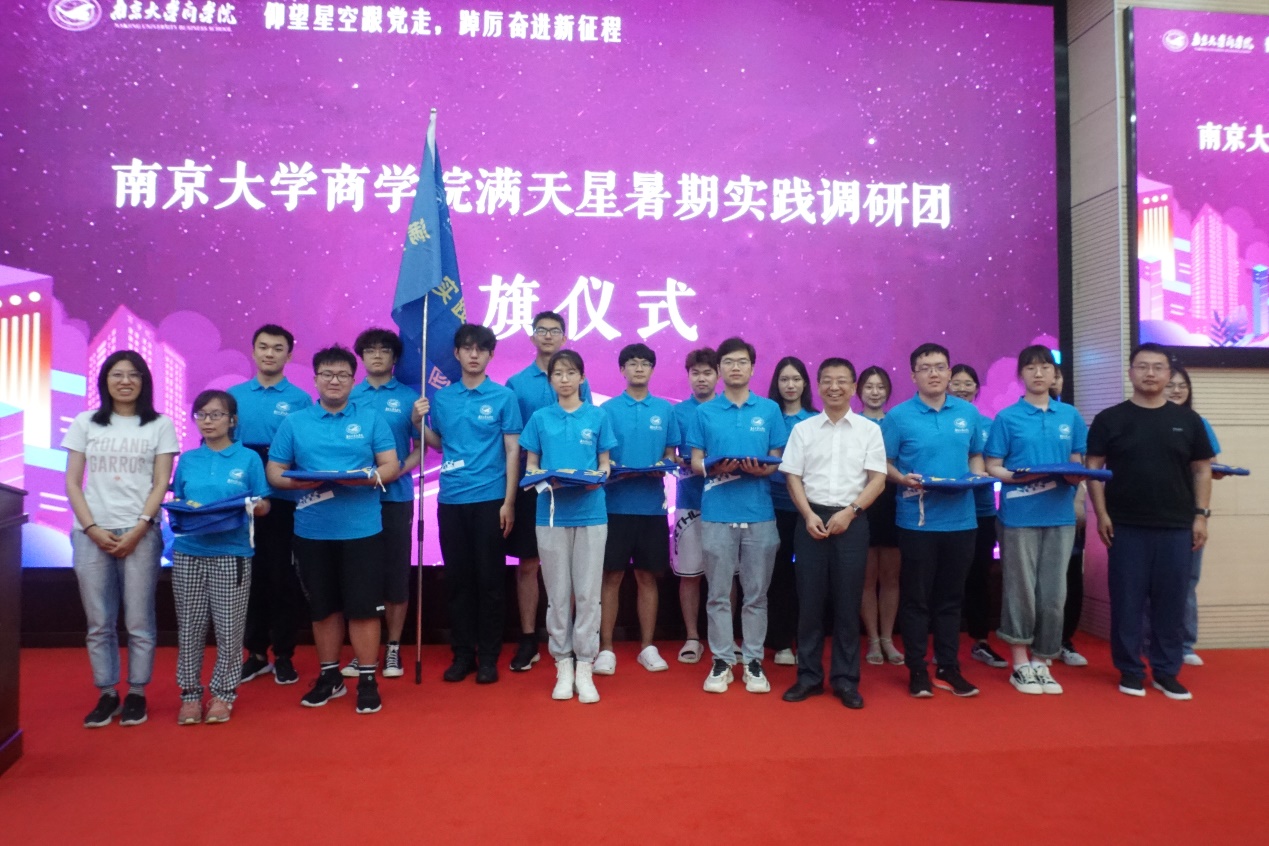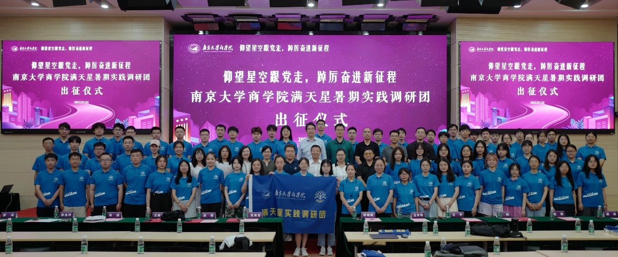 望星空跟党走,踔厉奋进新征程。7月2日晚,滚球买球的app官网满天星暑期实践调研团出征仪式在鼓楼校区安中楼鸿意报告厅举行。滚球买球的app官网团委副书记郭明姬老师出席仪式并勉励调研团成员“心系‘国之大者’、扎根中国大地、发挥示范作用”,滚球买球的app官网本科生教学与培养办公室主任、管理学院副院长贾良定教授和滚球买球的app官网产业经济学系王宇教授分别作实践培训和动员发言;滚球买球的app官网党委副书记、学工办主任王宇伟教授作总结发言。各实践育人导师、辅导员老师和满天星实践调研团成员参与仪式。