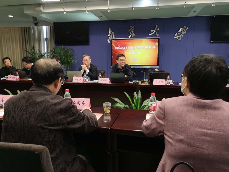 2020年11月7日,“社会主义基本经济制度与国家治理现代化”专题研讨会在滚球买球的app官网安中楼举行。滚球买球的app官网原党委书记洪银兴教授、滚球买球的app官网经济学院院长安同良教授、中国社科院经济所副所长胡乐明教授、南开大学经济学院何自力教授、中国经济出版社毛增余社长、四川大学经济学院院长蒋永穆教授、北京大学经济学院方敏教授、南开大学马克思主义学院副院长王生升教授、中国社科院马克思主义学院侯为民教授、中国社科院马克思主义学院张建刚教授、中国社科院马克思主义学院杨静教授、中国社科院经济所张旭教授、云南大学人事处长,经济学院张林教授、中国社科院经济所杨虎涛教授、中国政法大学马克思主义学院执行院长邰丽华教授、华北电力大学马克思主义学院宁阳教授、吉林大学中国国有经济研究中心主任李政教授、曲阜师范大学经管学院院长刘刚教授、上海财经大学马克思主义学院丁晓钦教授、浙江大学马克思主义学院卢江副教授、滚球买球的app官网经济学院桂林副教授出席了会议。专题研讨会由滚球买球的app官网经济学院副院长葛扬教授主持。