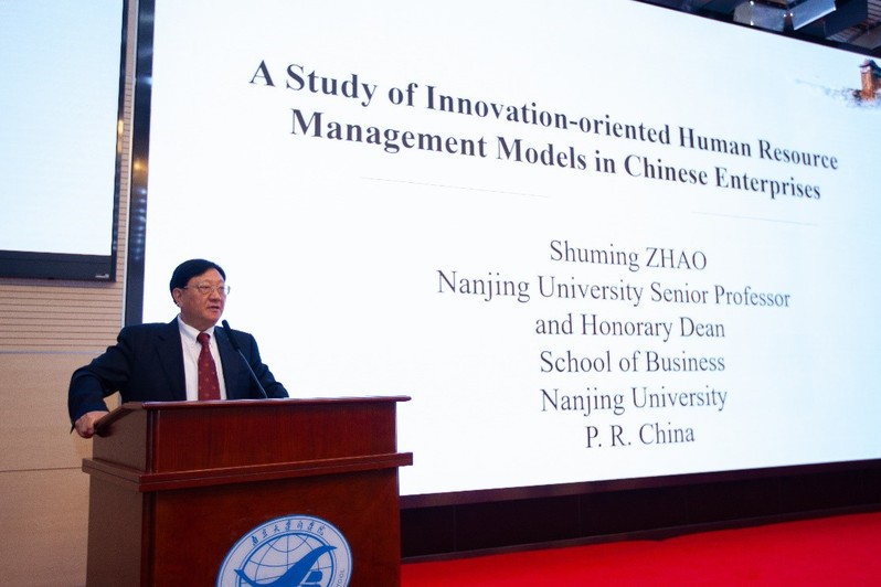 研讨会主席、滚球买球的app官网资深教授、行知书院院长、滚球买球的app官网名誉院长赵曙明博士作“中国企业创新人力资源管理模式研究”主题演讲