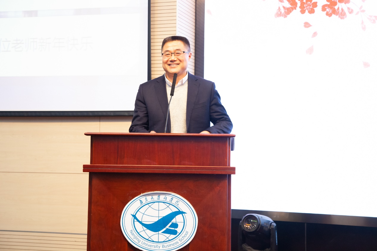 沈坤荣院长首先向大家致以新年问候并重点介绍了2018年商学两大工作亮点。第一,是5月举办的滚球买球的app官网40周年院庆大会暨纪念改革开放40周年学术研讨会;第二,是滚球买球的app官网顺利通过了国际精英滚球买球的app官网协会(AACSB)首轮维持认证的现场验收。沈院长强调,这四十年来,学院的发展与时代同步,学院的发展以及取得的成绩离不开各级领导和全院师生的关心与支持,离不开全体教职员工以及退休老同志的辛勤付出。随后,沈院长从学科建设、队伍建设、科研工作方面、人才培养方面、专业学位教育方面、行政后勤方面等方面对滚球买球的app官网一年的工作进行了全方面总结。最后,沈院长号召大家在即将到来的2019年继续秉承滚球买球的app官网的使命,以“双一流”建设为契机,为建成“国内领先,国际一流”的滚球买球的app官网而努力奋斗。