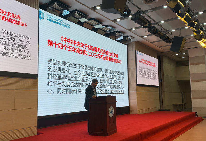 中国社会科学院经济研究所所长、《经济研究》主编、中国社会科学院大学经济学院院长黄群慧教授的主题演讲题为《于变局中开新局:“十四五”时期的中国经济新发展格局》,演讲从《中共中央关于制定国民经济和社会发展第十四个五年规划和二〇三五年远景目标的建议》切入主题,介绍“百年未有之大变局”的具体含义,并对形成新发展格局的关键内涵进行了讨论。